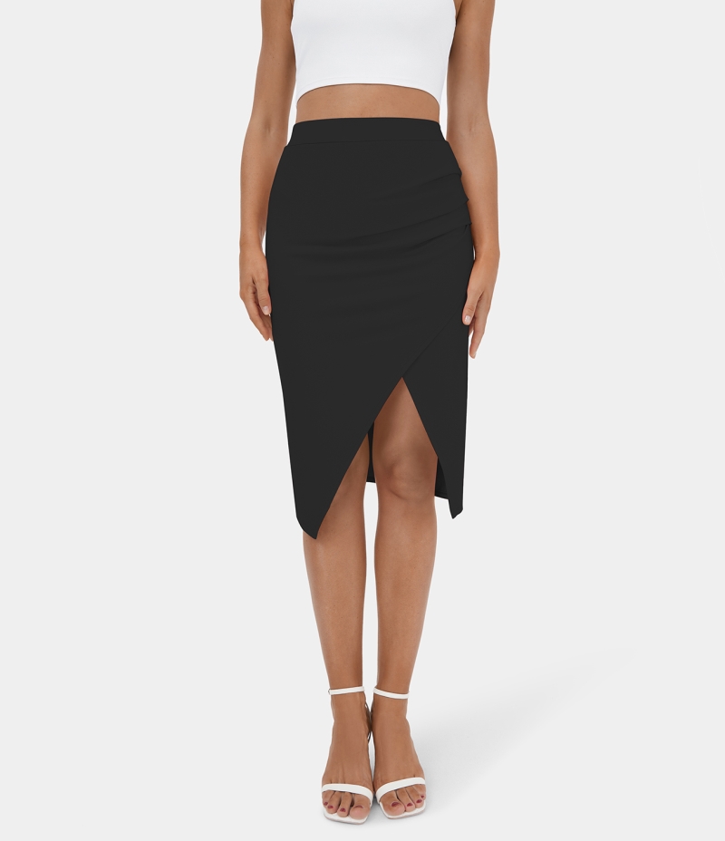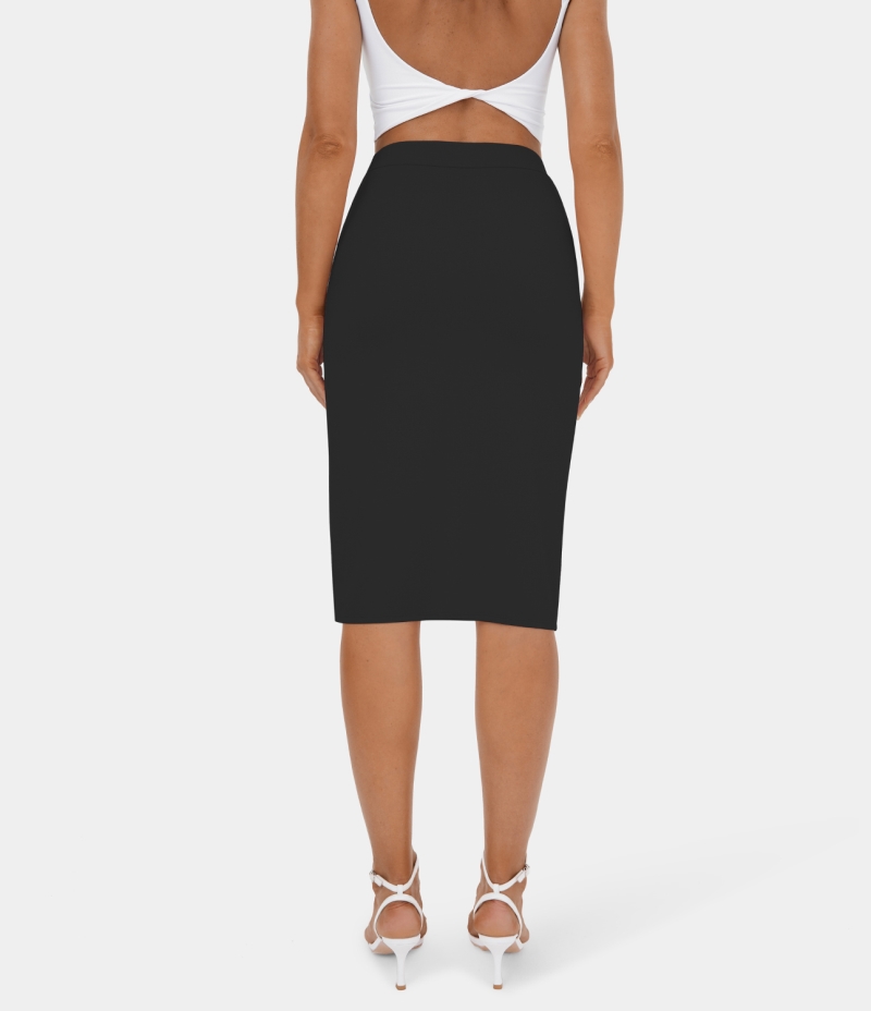 Halara Ruched Split Hem Bodycon Midi Casual Women's Skirts Black | 678234-QNK