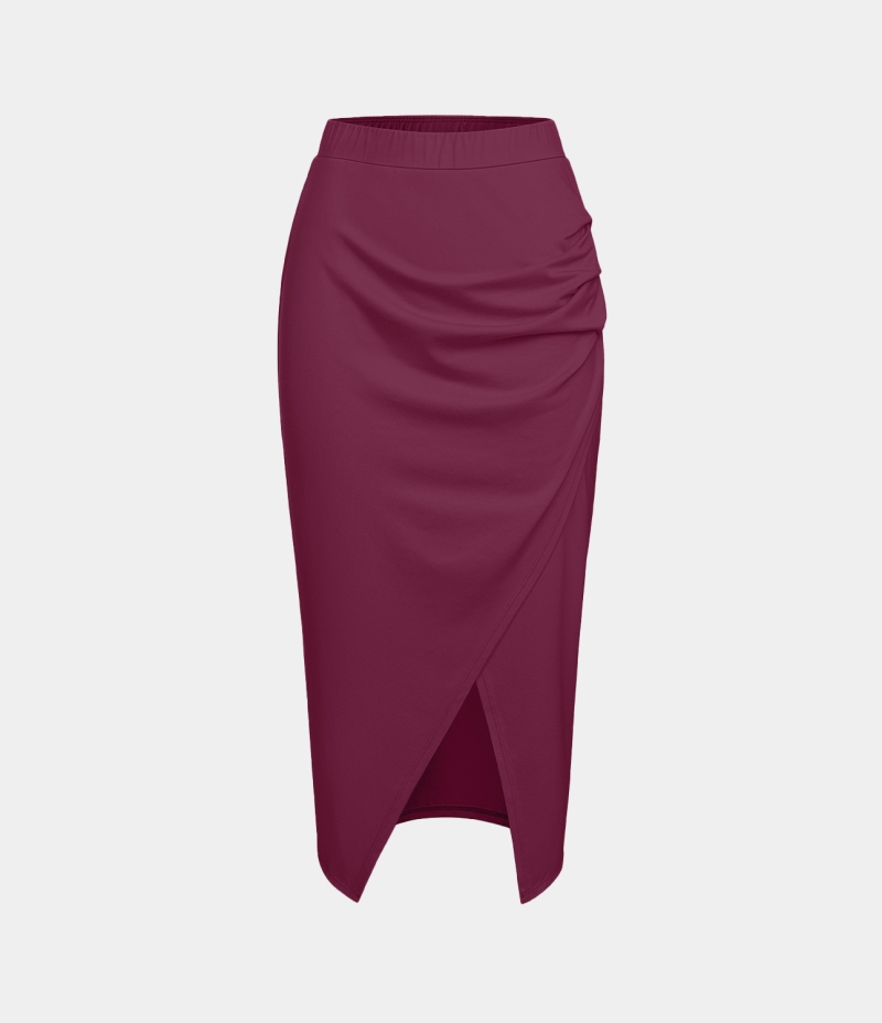 :: Halara Ruched Split Hem Bodycon Midi Casual Women's Skirts New Maroon | 349271-OJU