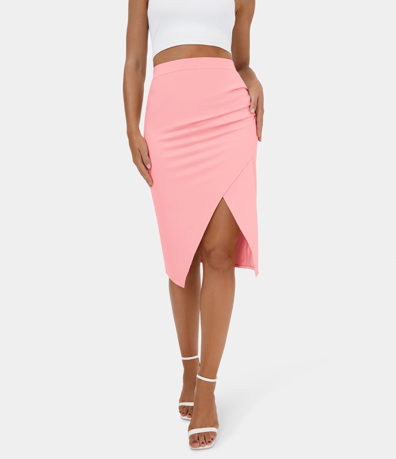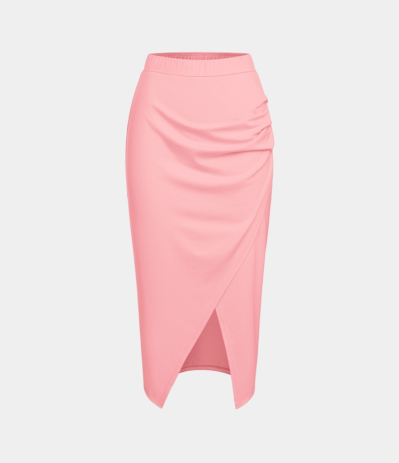 Halara Ruched Split Hem Bodycon Midi Casual Women's Skirts Pale Rosette | 963715-VSH