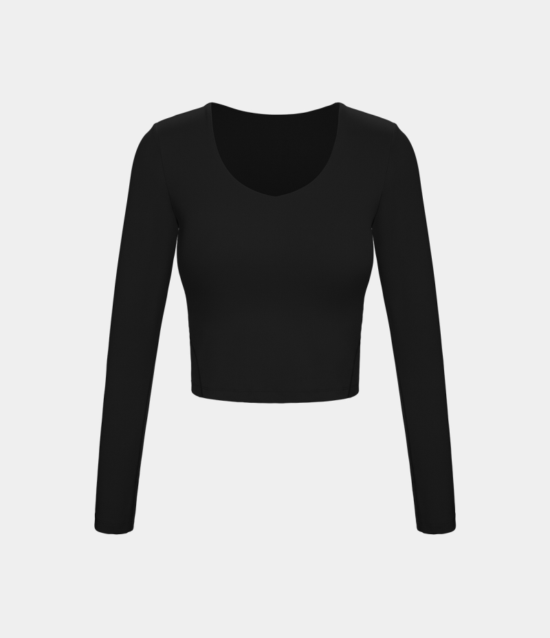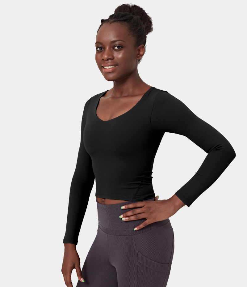:: Halara Scoop Neck Long Sleeve Sports Women's Tops Black | ECQBSUV-63