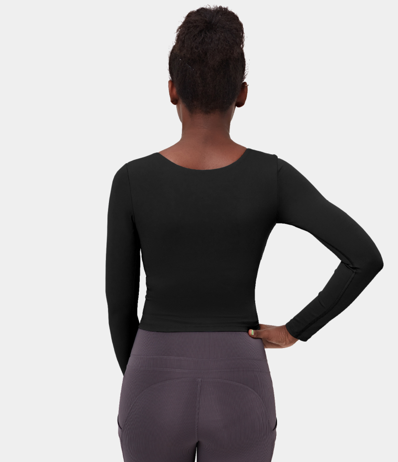 :: Halara Scoop Neck Long Sleeve Sports Women's Tops Black | LKFZSEV-83