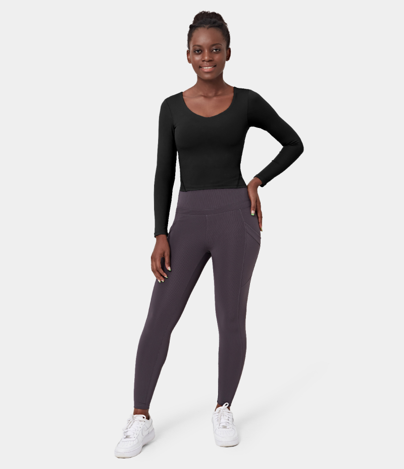 Halara Scoop Neck Long Sleeve Sports Women's Tops Black | LKFZSEV-83