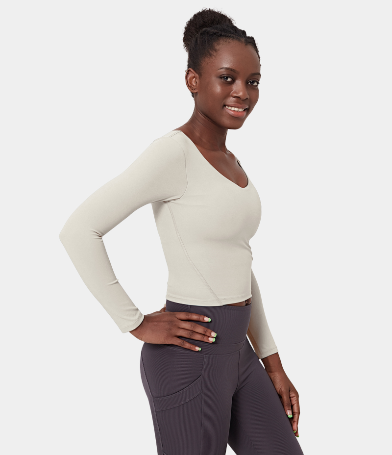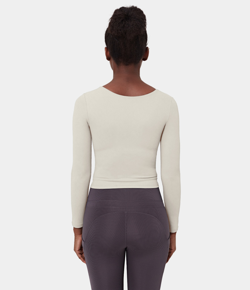 :: Halara Scoop Neck Long Sleeve Sports Women's Tops White | NKOZPWI-16