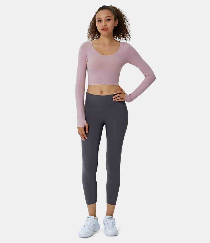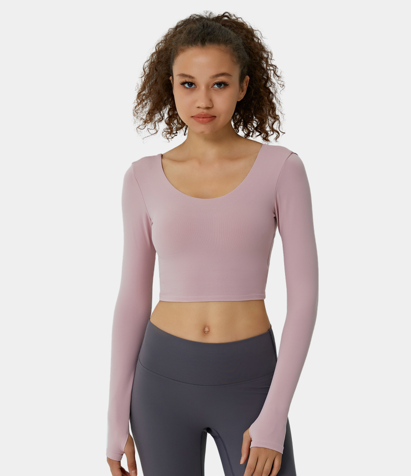 Halara Scoop Neck Thumb Hole Backless Crisscross Cropped Sports Women's Tops Putty Pink | WFNERLD-57