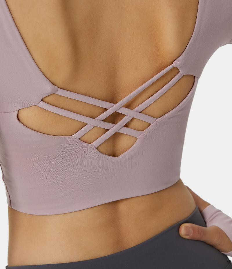 :: Halara Scoop Neck Thumb Hole Backless Crisscross Cropped Sports Women's Tops Putty Pink | WFNERLD-57