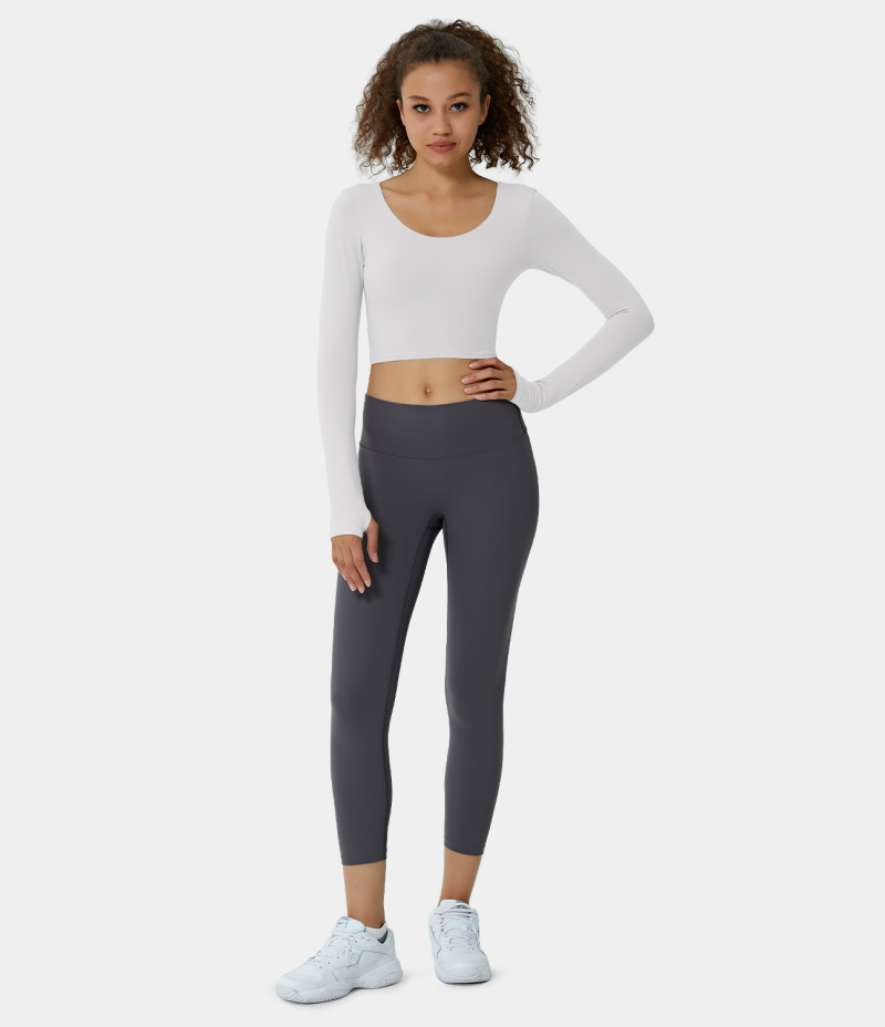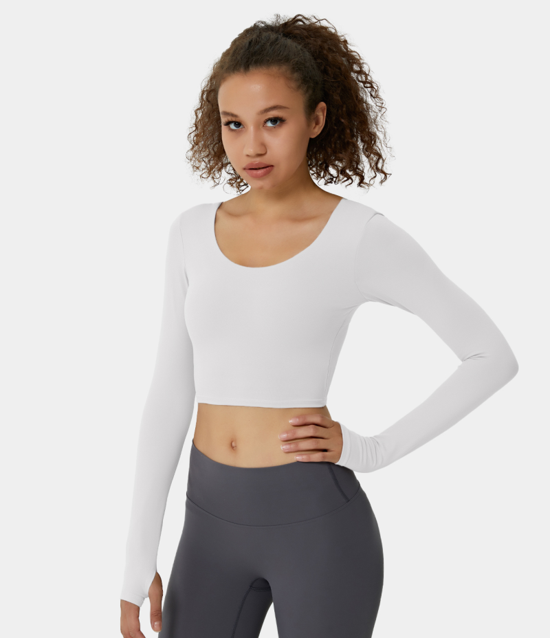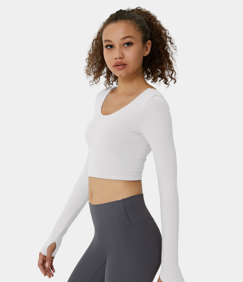 Halara Scoop Neck Thumb Hole Backless Crisscross Cropped Sports Women's Tops White | EYNSFBA-94