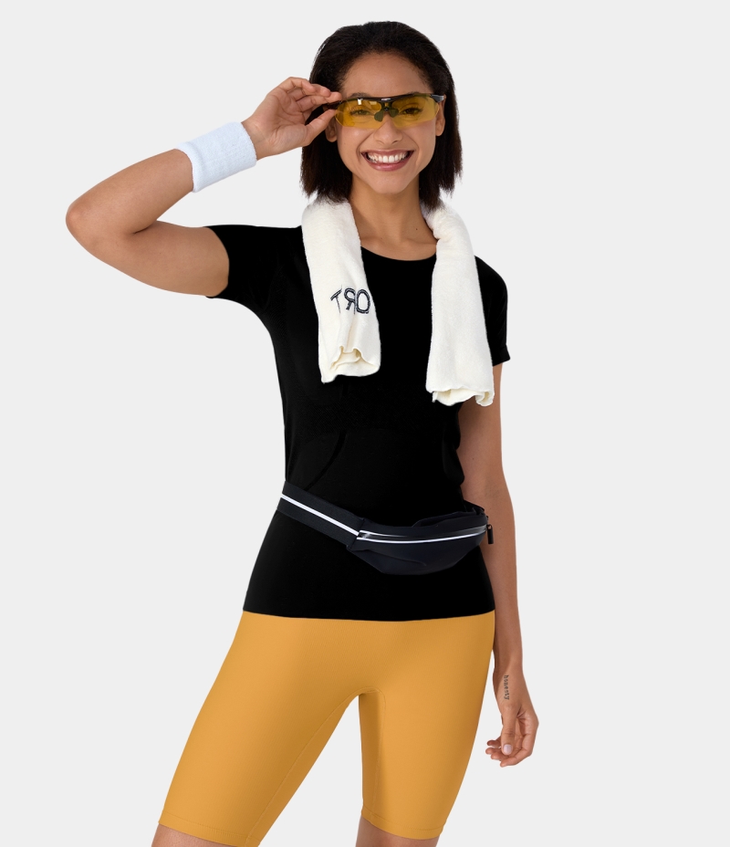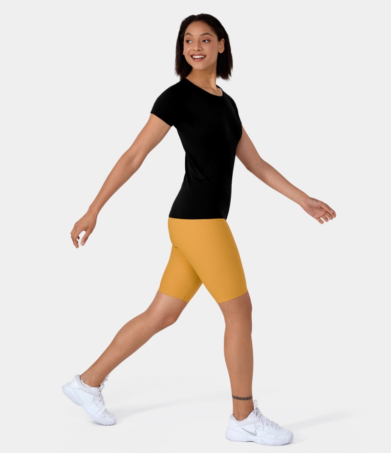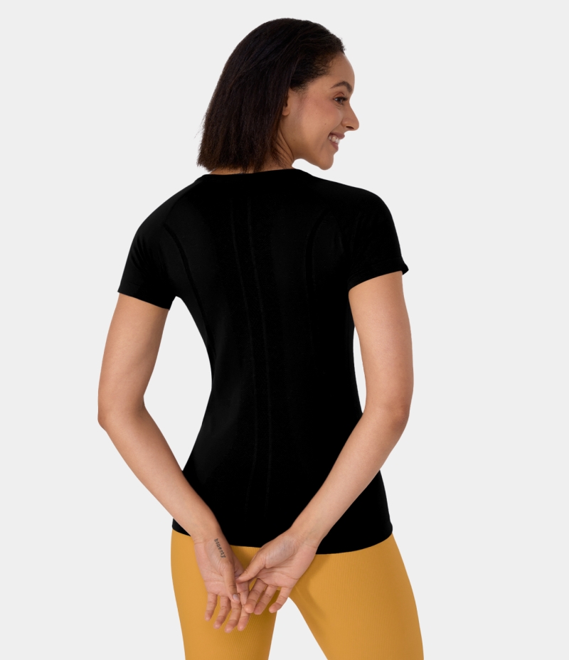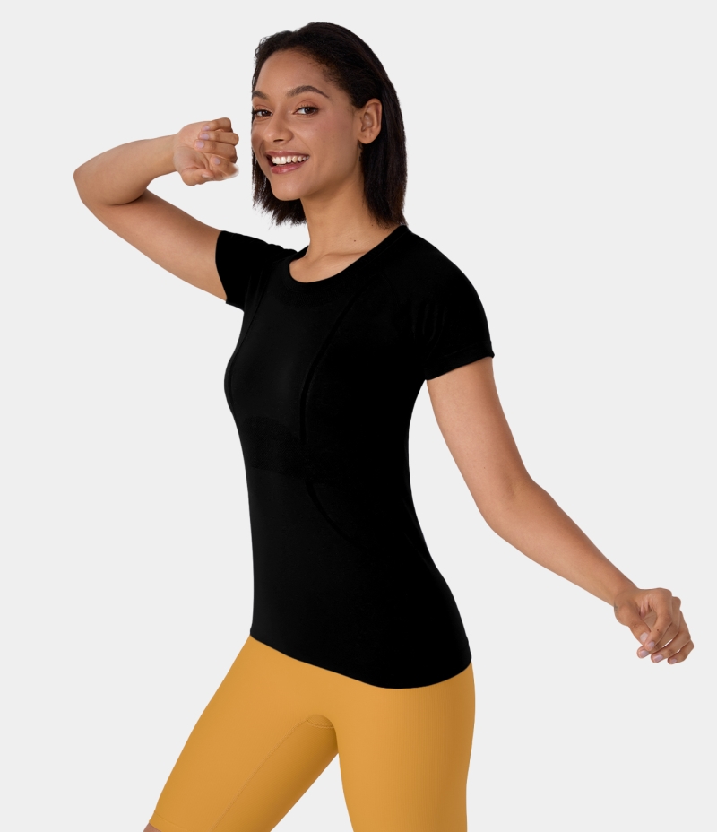 :: Halara Seamless Flow Breathable Round Neck Casual Sports Women's Tops Black | KVGQZTB-29
