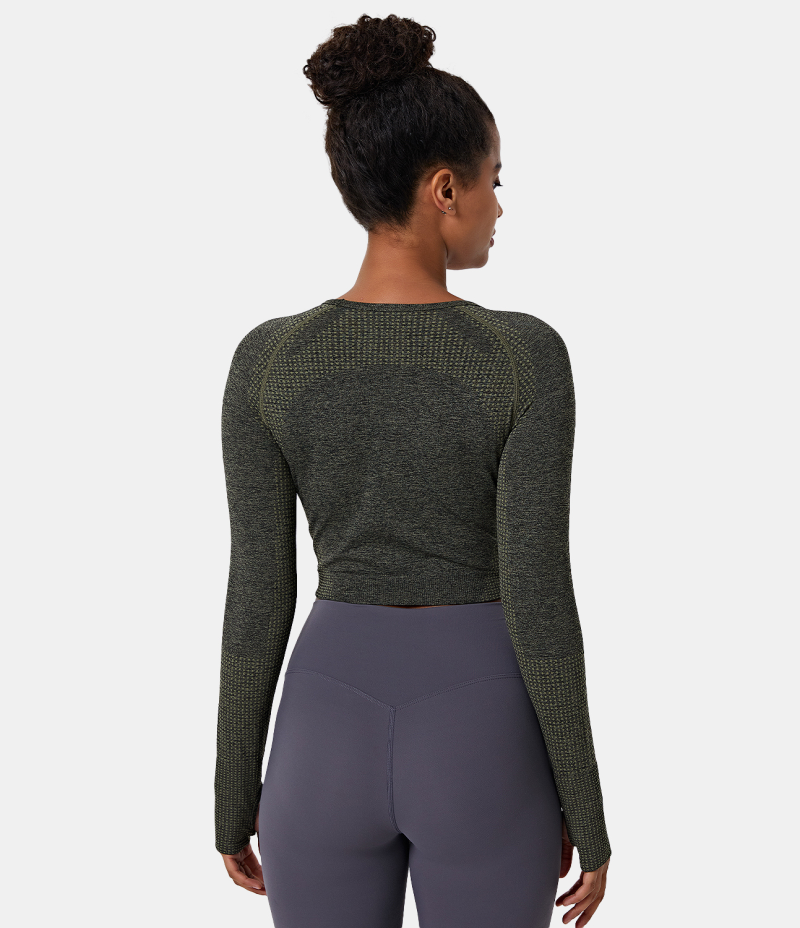 :: Halara Seamless Flow Breathable Thumb Hole Cropped Sports Women's Tops Midnight Green | GBPXJKT-36