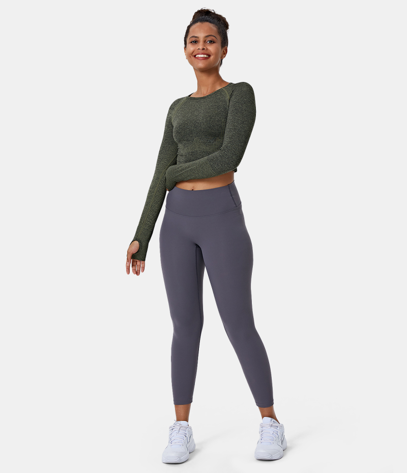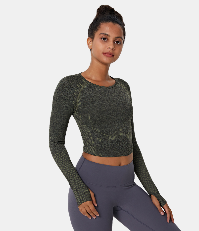 Halara Seamless Flow Breathable Thumb Hole Cropped Sports Women's Tops Midnight Green | GBPXJKT-36