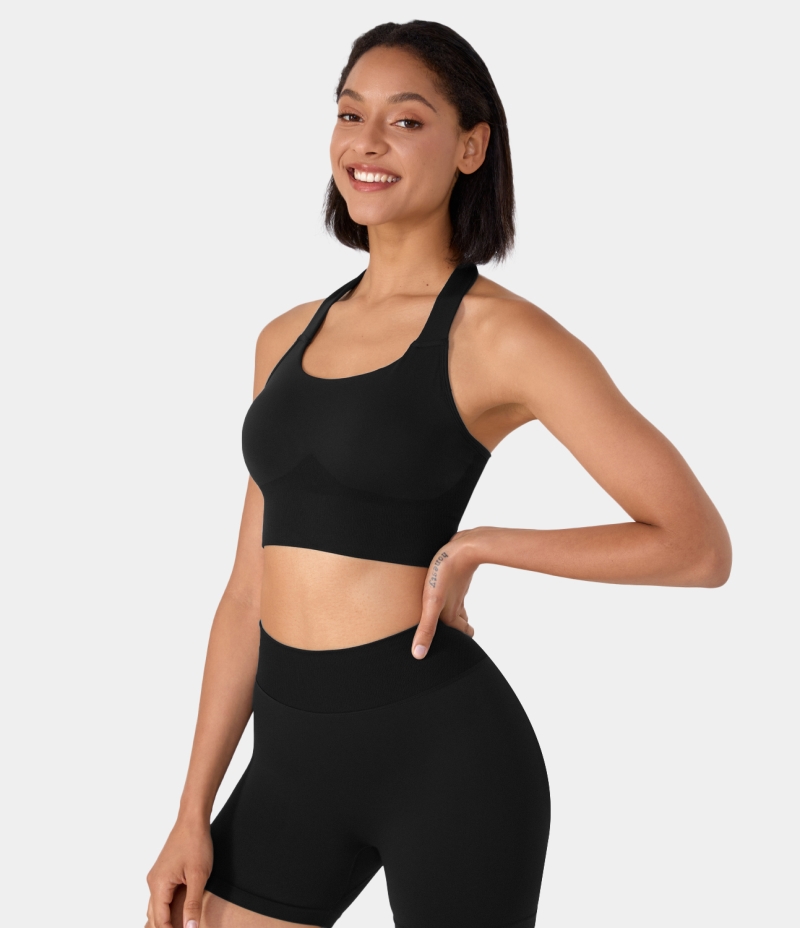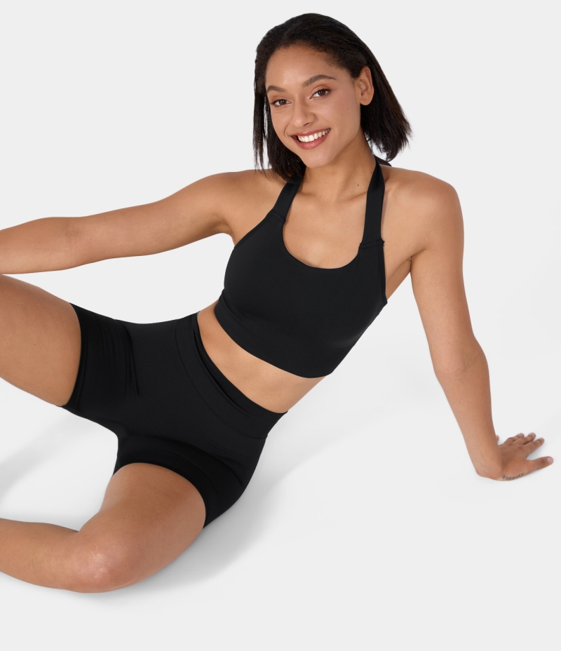 :: Halara Seamless Flow Halter Tie Back Yoga Sports Bra Women's Tops Black | UVASKIF-68