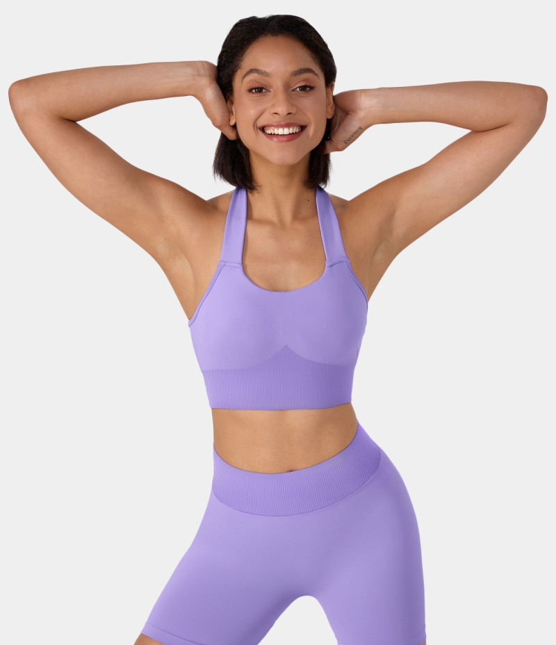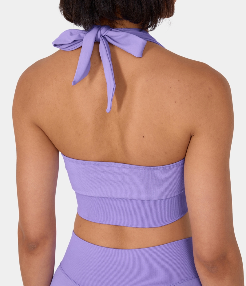 :: Halara Seamless Flow Halter Tie Back Yoga Sports Bra Women's Tops Purple Rose | JOVGLFQ-92
