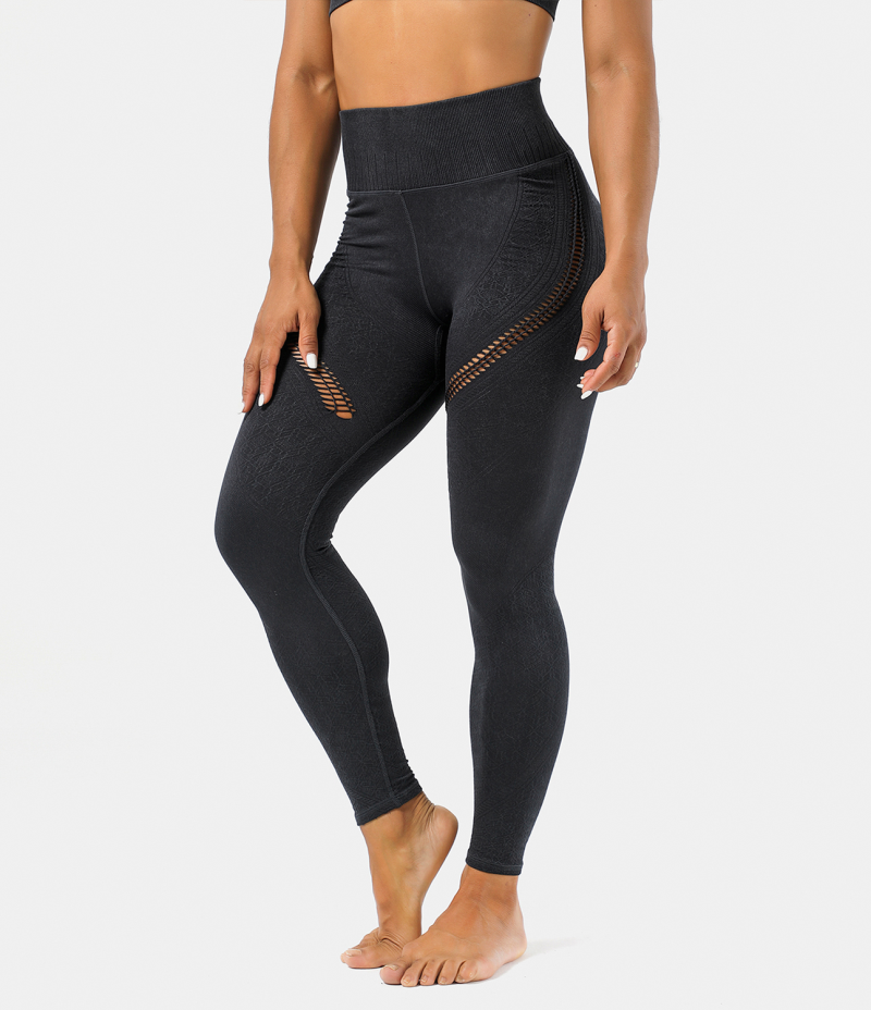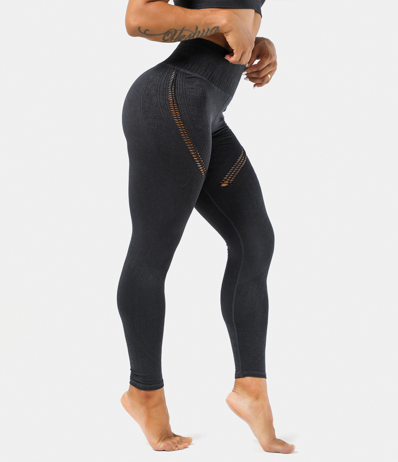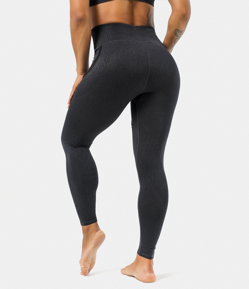 :: Halara Seamless Flow High Waisted Braided Wash Effect Women's Leggings Black | 378540-BPF