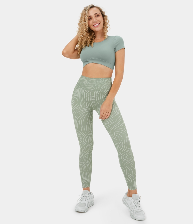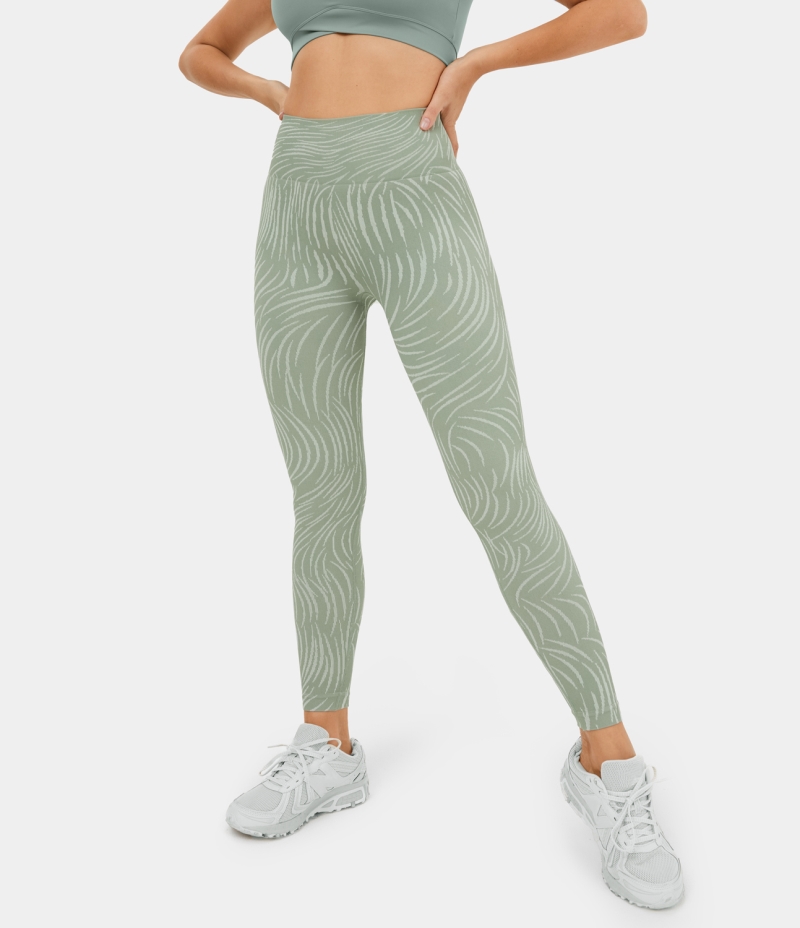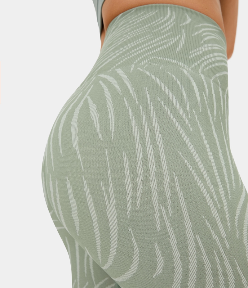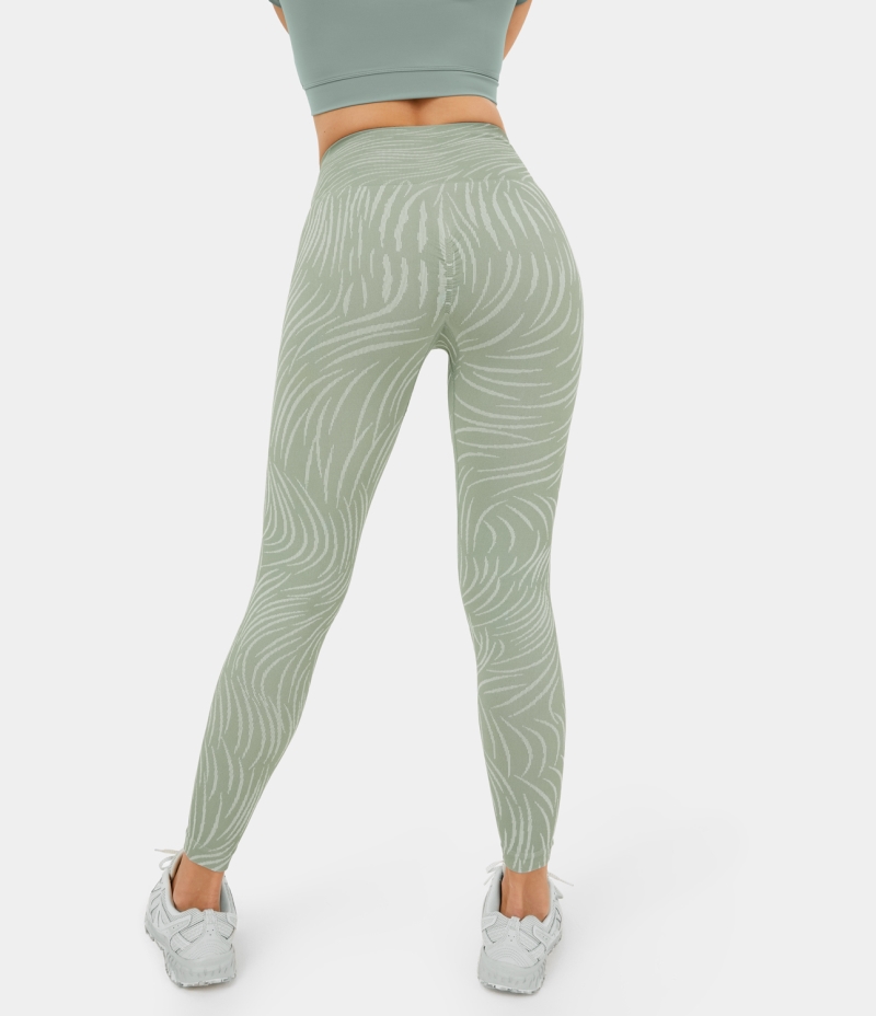 :: Halara Seamless Flow High Waisted Butt Lifting Zebra Stripe Yoga Women's Leggings Foam Green Zebra Stripe | 034569-UFL