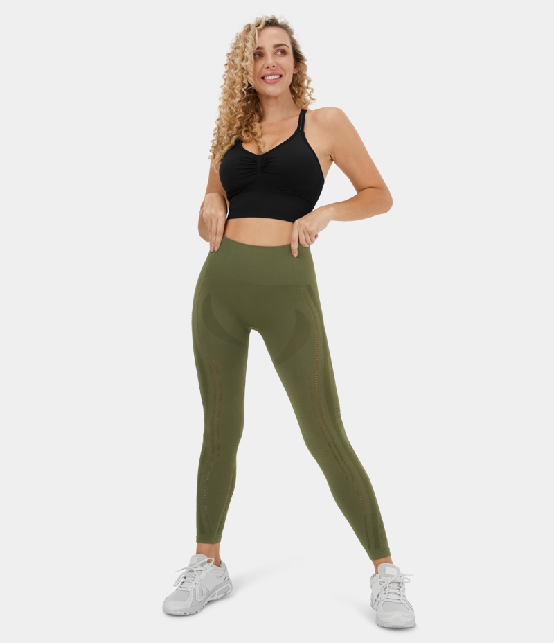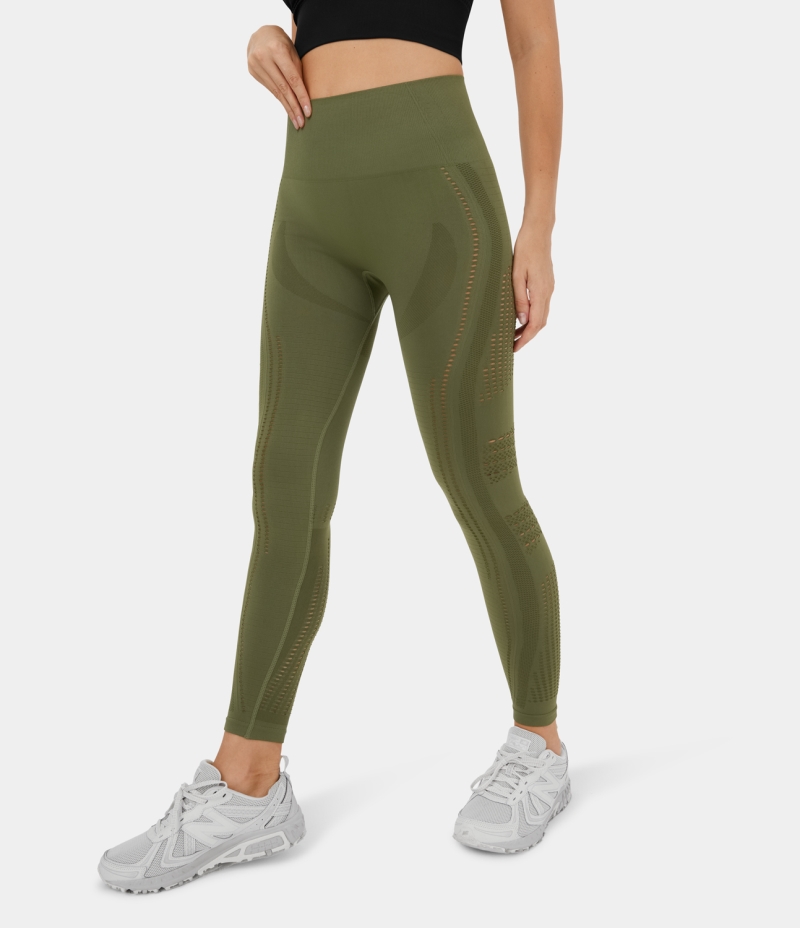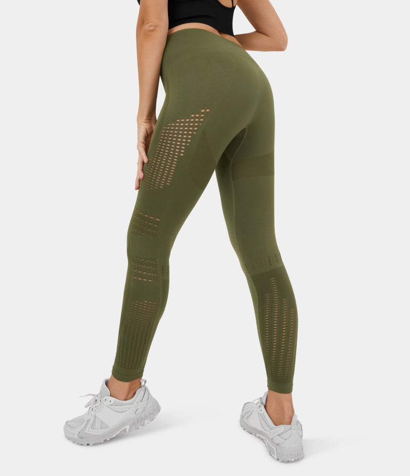 :: Halara Seamless Flow High Waisted Cut Out Yoga Women's Leggings Cypress | 508974-YOQ