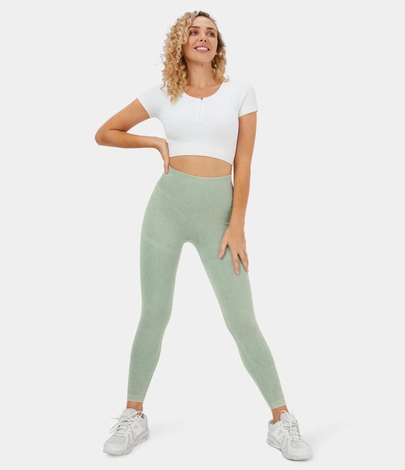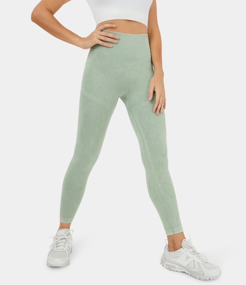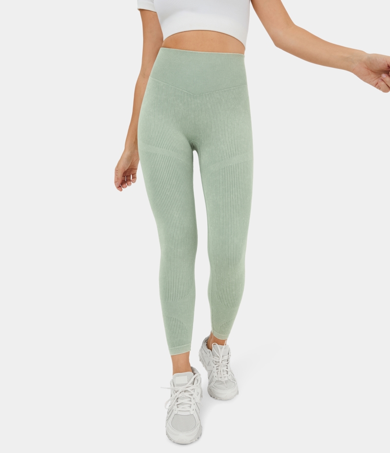 :: Halara Seamless Flow High Waisted Ruched Butt Lifting Striped Yoga Women's Leggings Light Green Stripe | 293016-DVJ