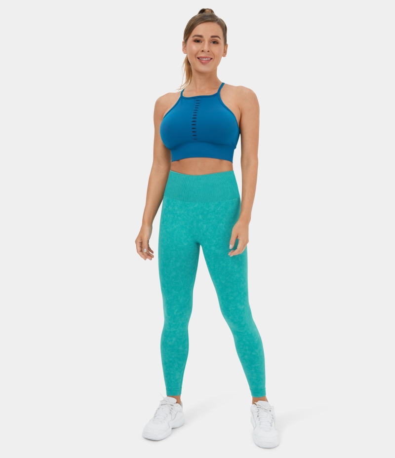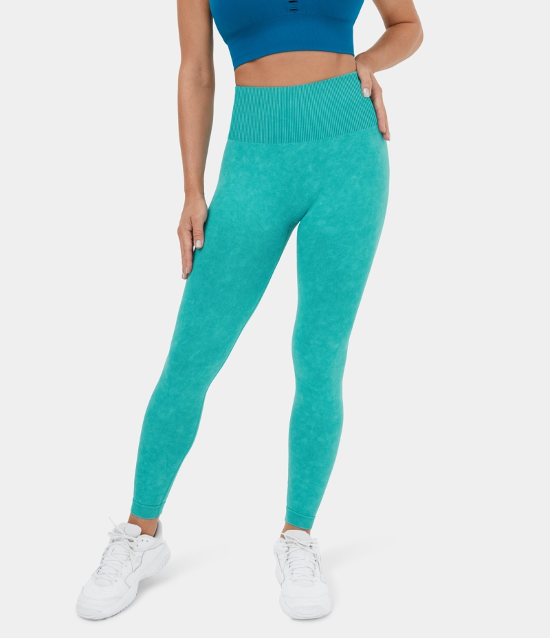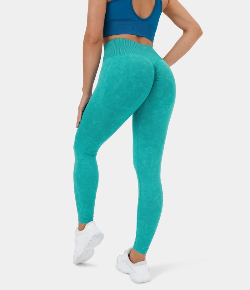 :: Halara Seamless Flow High Waisted Ruched Washed Yoga 7/8 Women's Leggings Washed Turquoise | 658347-AUB