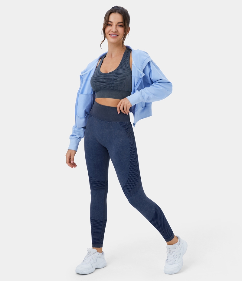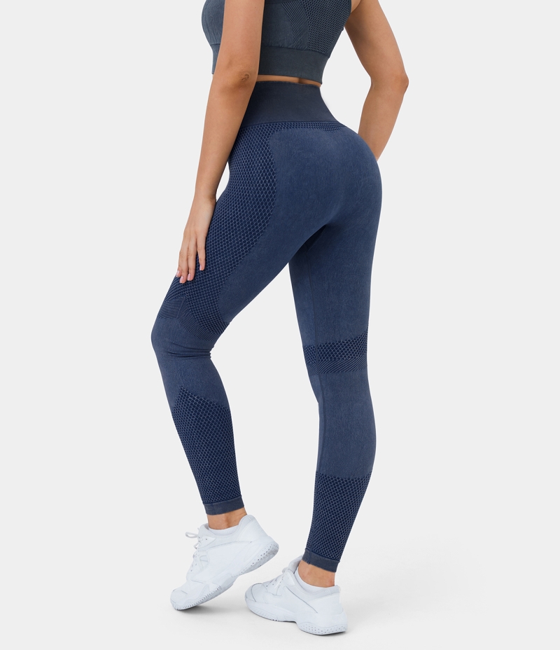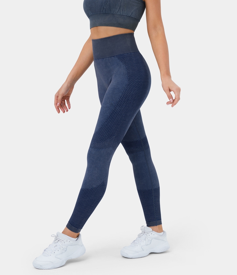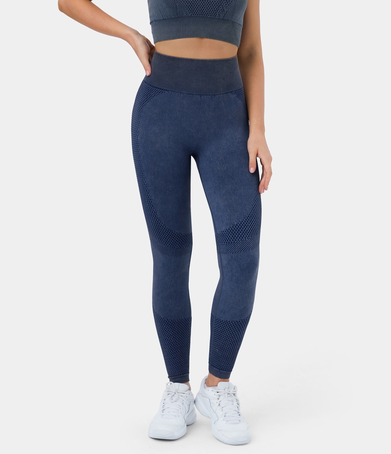 :: Halara Seamless Flow High Waisted Washed Yoga 7/8 Women's Leggings Insignia Blue | 482369-MRS