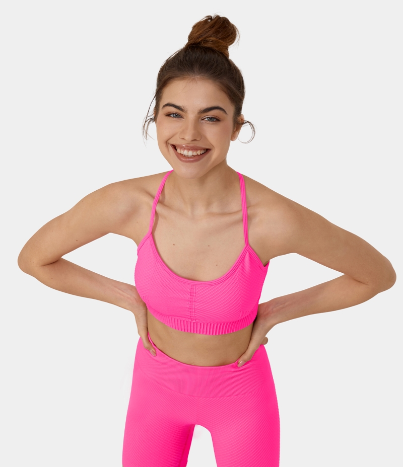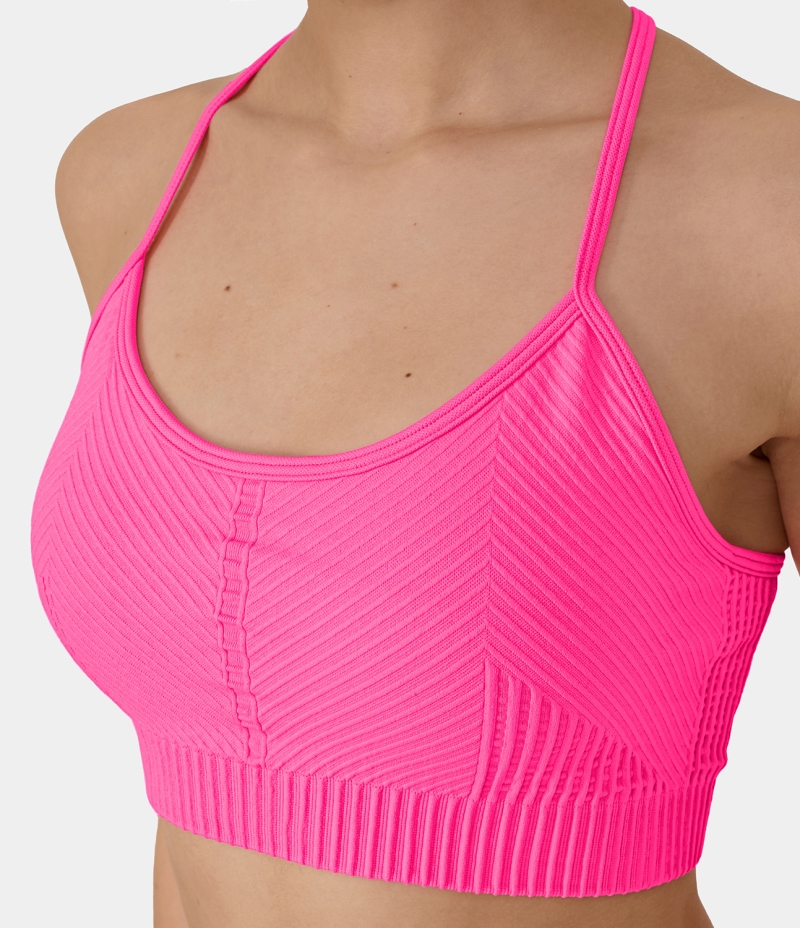 :: Halara Seamless Flow Low Support Ribbed Racerback Yoga Sports Bra Women's Tops Hot Pink | RBTJQUA-29