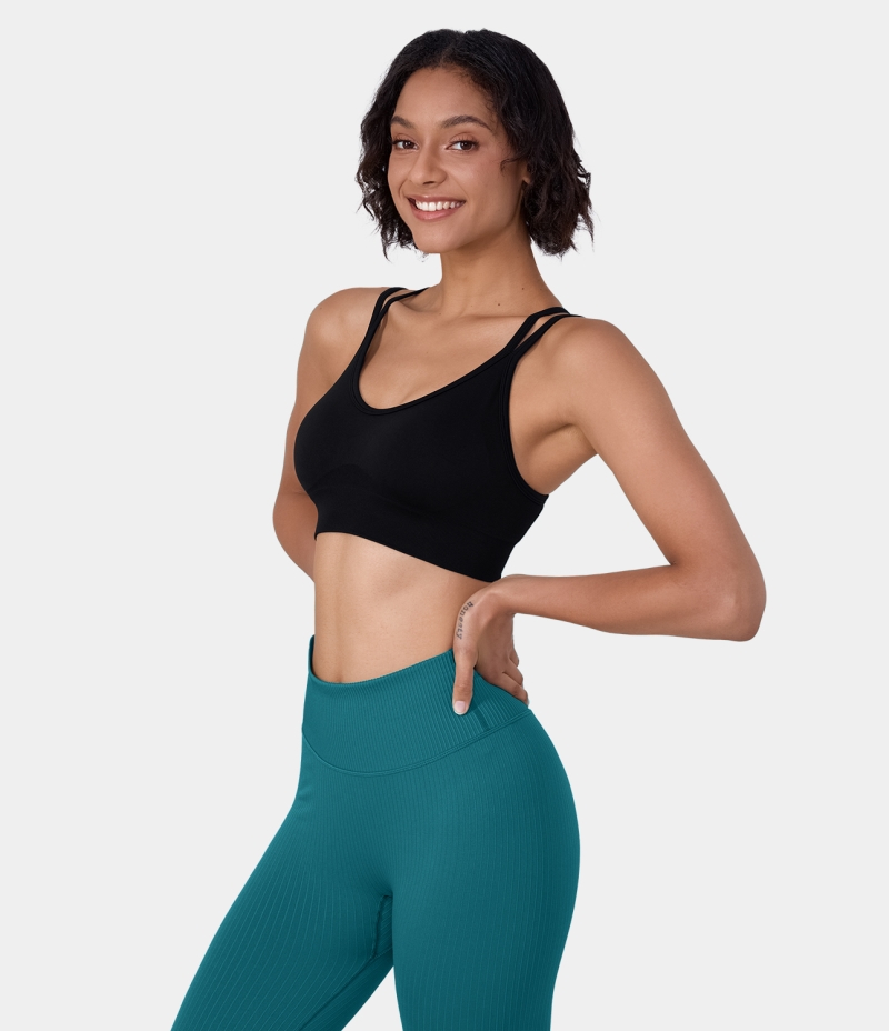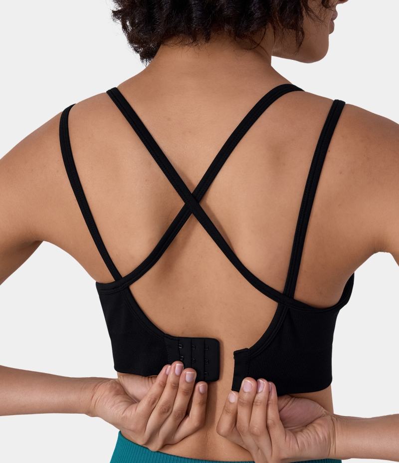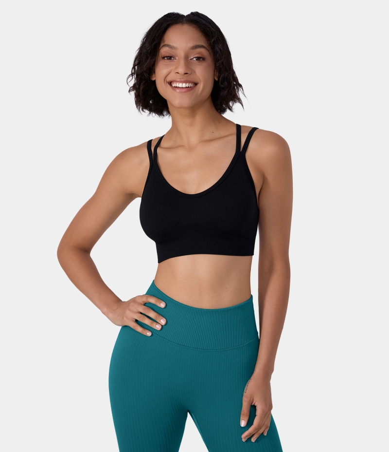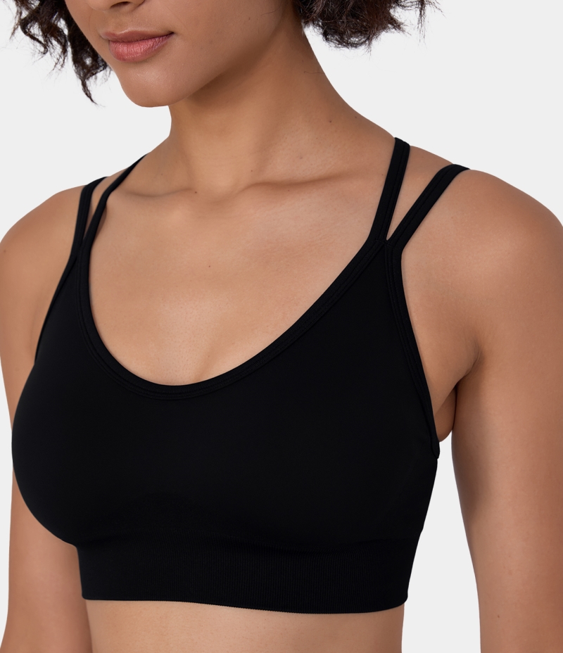 :: Halara Seamless Flow Low Support U Neck Backless Crisscross Yoga Sports Bra Women's Tops Black | ILSKWJA-68