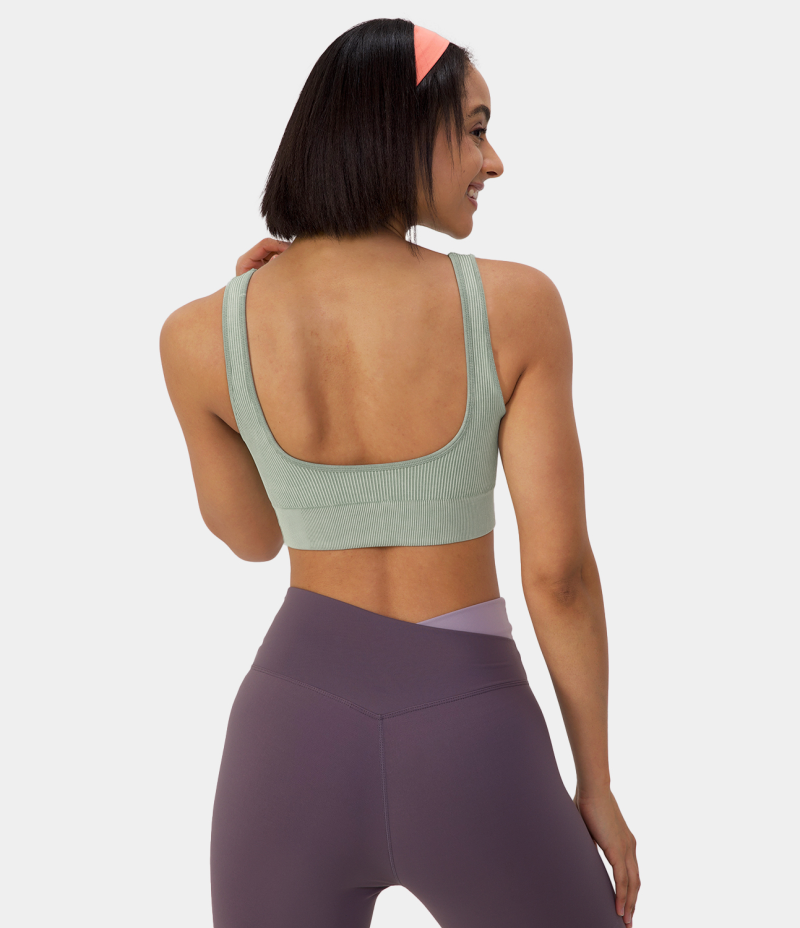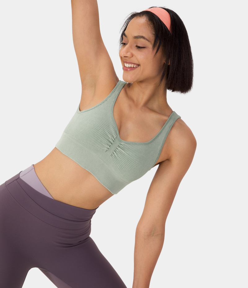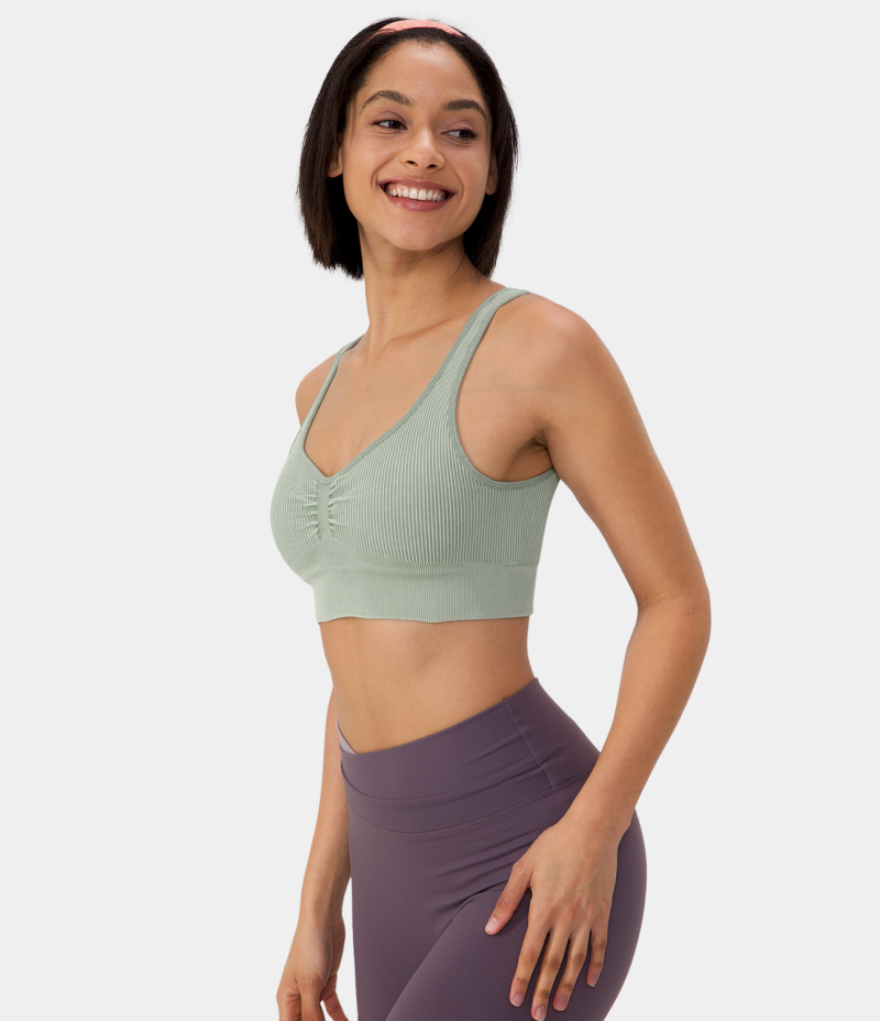 Halara Seamless Flow Medium Support Ruched Yoga Sports Bra Women's Tops Pistachio | JNHVTIO-13