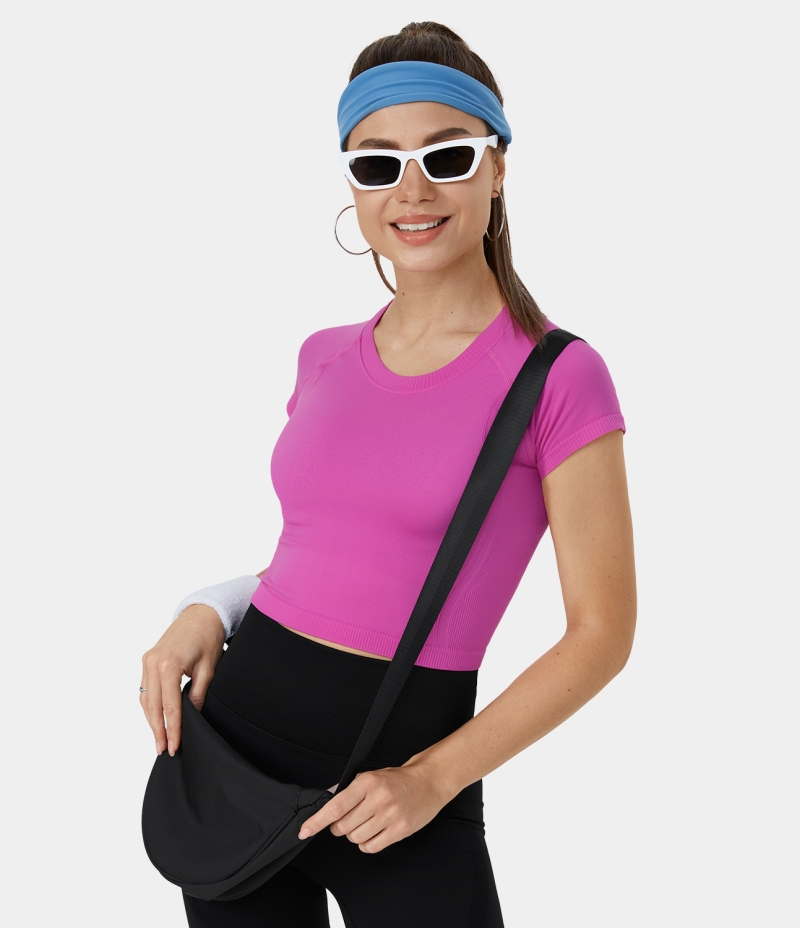 :: Halara Seamless Flow Plain Cropped Yoga Sports Women's Tops Fiji Flower | TXMZWKI-85