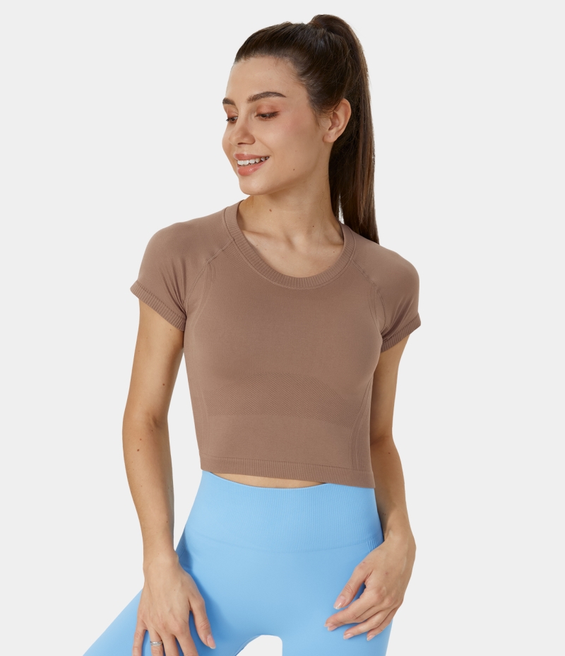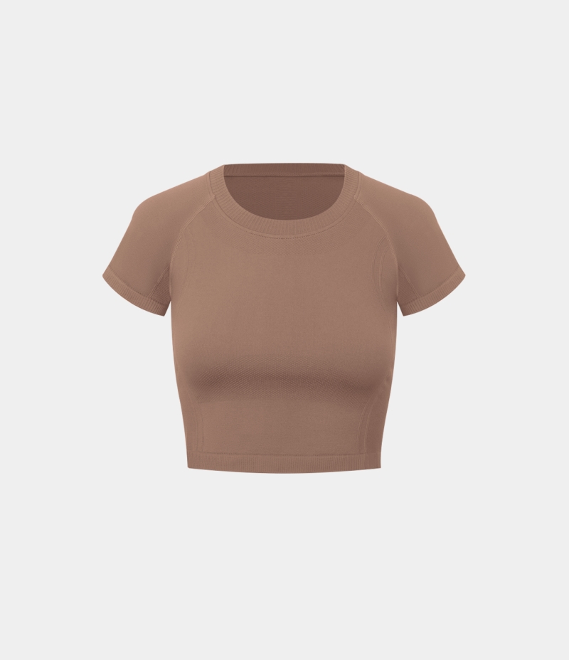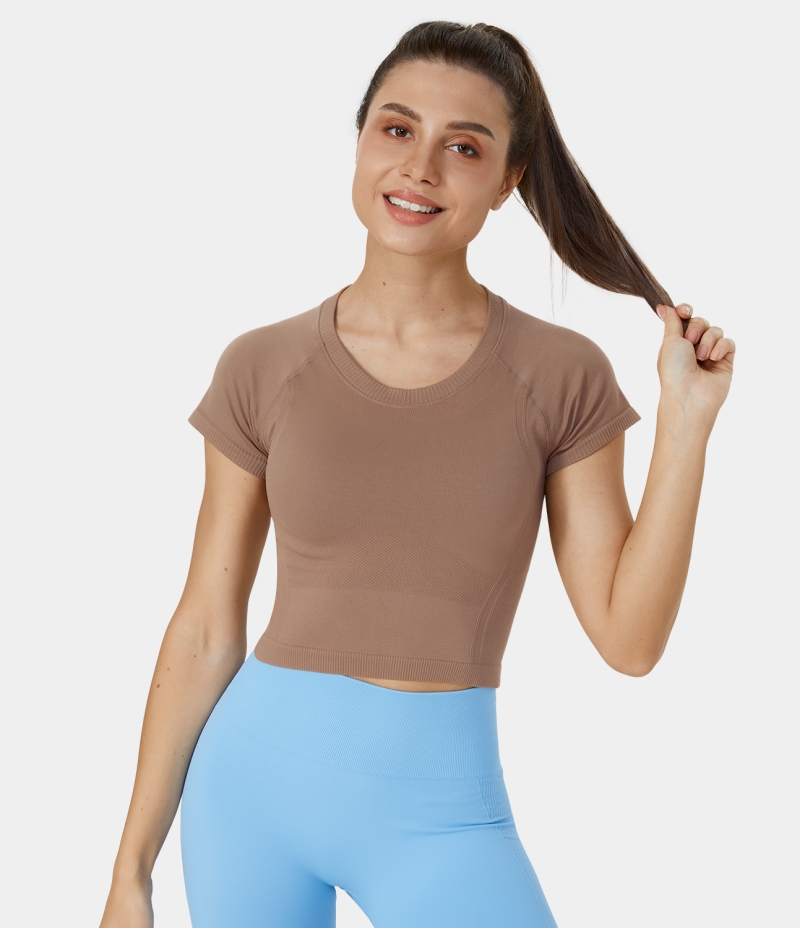 :: Halara Seamless Flow Plain Cropped Yoga Sports Women's Tops Mocha Mousse | OPDXQGY-43