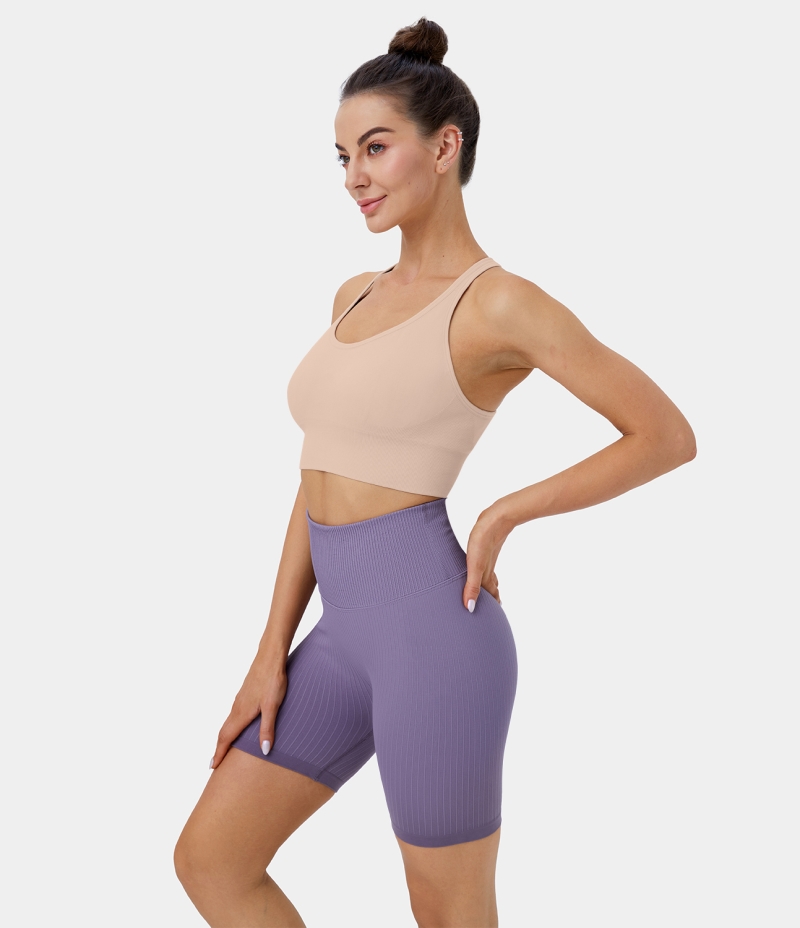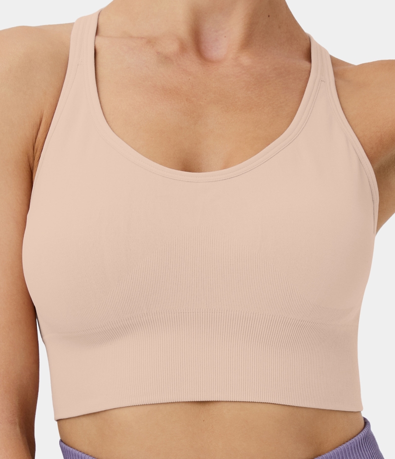 :: Halara Seamless Flow Racerback Cut Out Adjustable Cropped Yoga Tank(Recommend sizing up) Women's Tops Cream Tan | HRLVOZJ-20