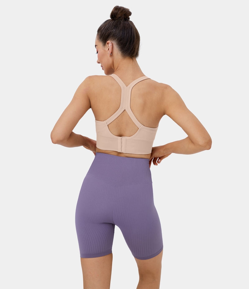 Halara Seamless Flow Racerback Cut Out Adjustable Cropped Yoga Tank(Recommend sizing up) Women's Tops Cream Tan | HRLVOZJ-20