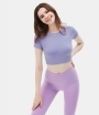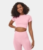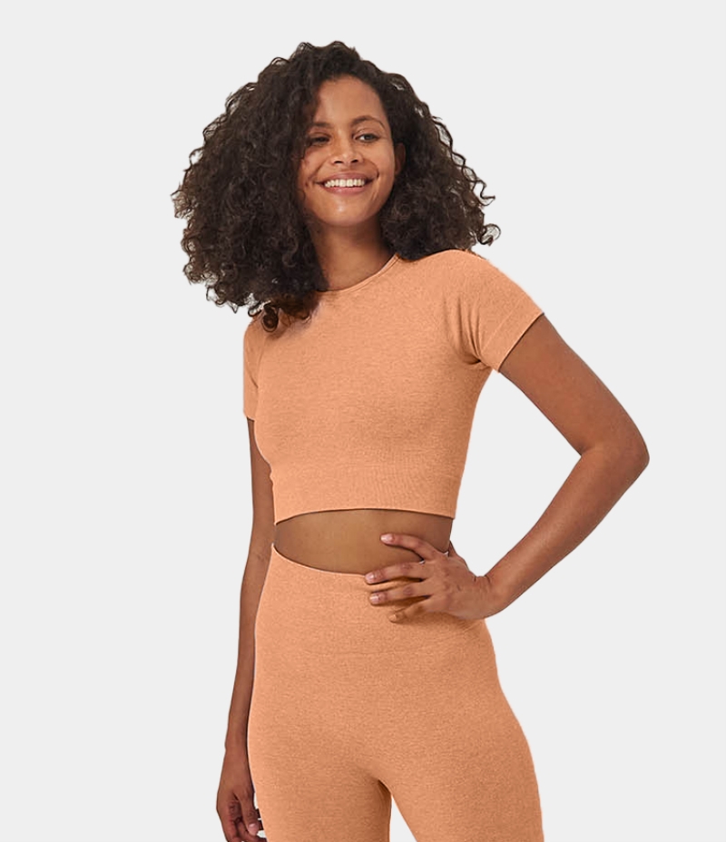 :: Halara Seamless Flow Raglan Short Sleeve Cropped Sports Women's Tops Salmon Buff | YJMTRQB-71