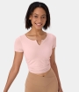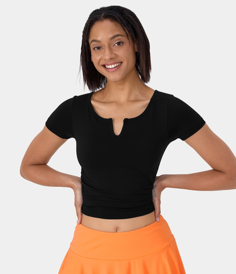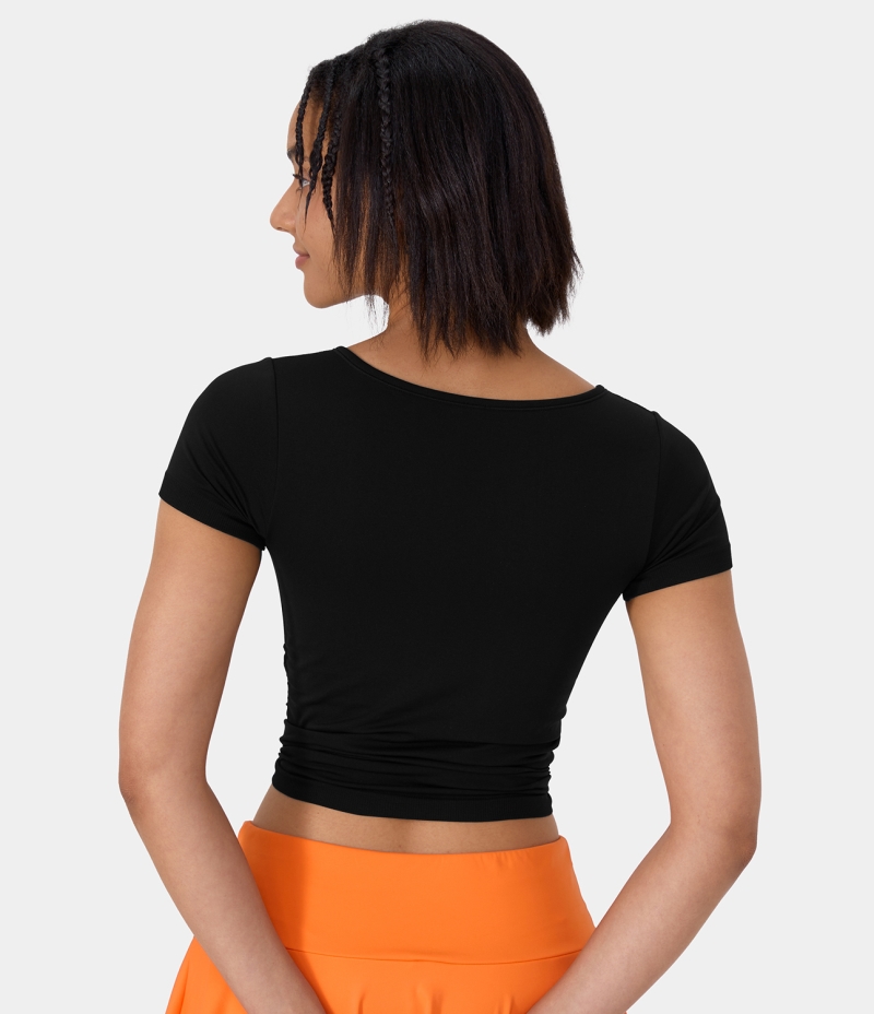 :: Halara Seamless Flow Short Sleeve Ruched Cropped Sports Women's Tops Black | UENJTGB-60