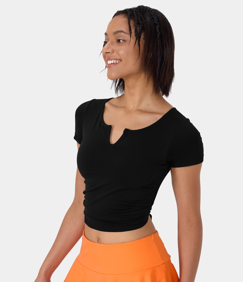 Halara Seamless Flow Short Sleeve Ruched Cropped Sports Women's Tops Black | UENJTGB-60