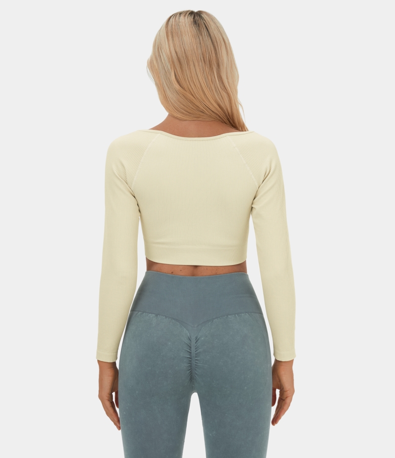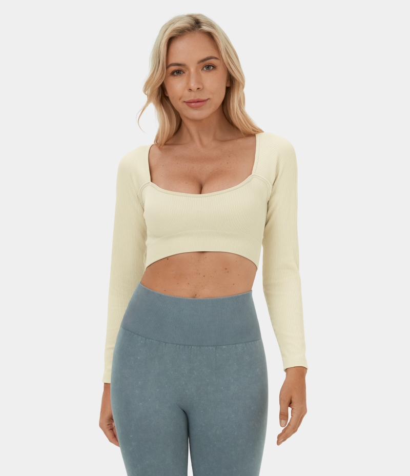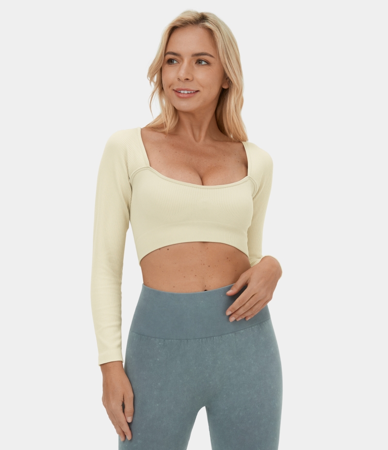 Halara Seamless Flow Square Neck Cropped Yoga Sports Women's Tops White Asparagus | OPYGHCM-47