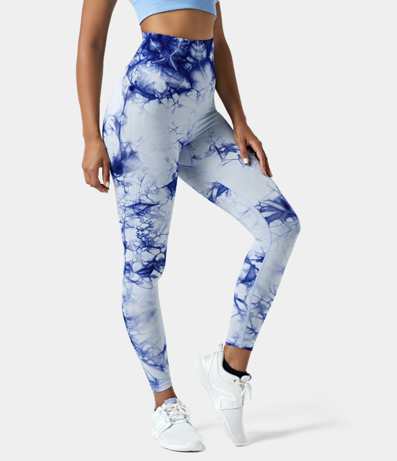 :: Halara Seamless Flow Super High Waist Tie Dye Yoga Women's Leggings Sky Blue | 081956-XKW