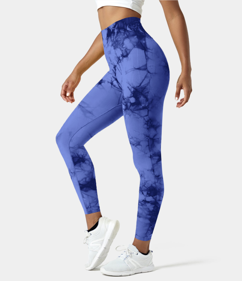 :: Halara Seamless Flow Super High Waist Tie Dye Yoga Women's Leggings Tie-dye Blue Iris | 130285-JXQ