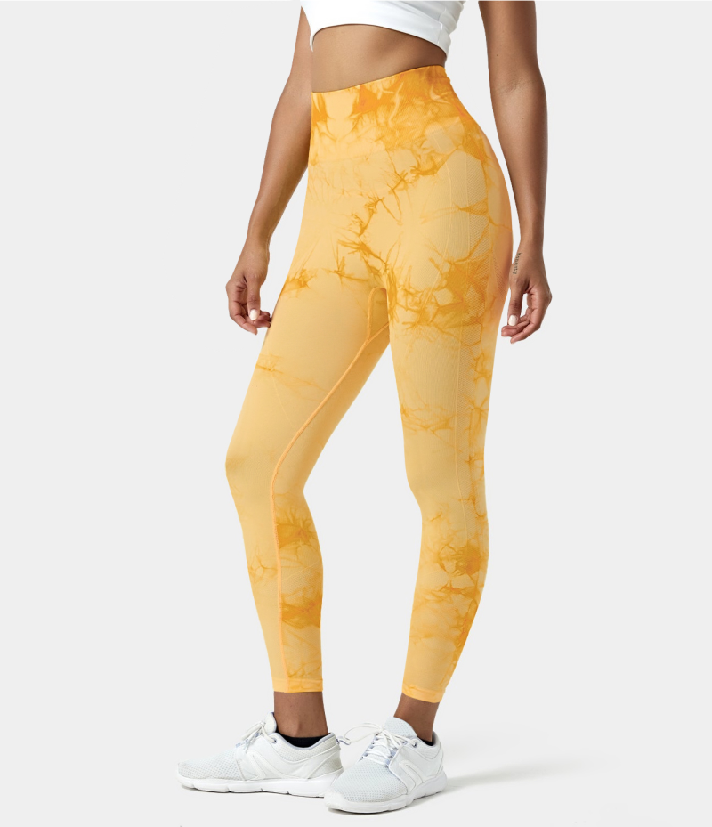 :: Halara Seamless Flow Super High Waist Tie Dye Yoga Women's Leggings Tie-dye Cornsilk | 427963-AGW