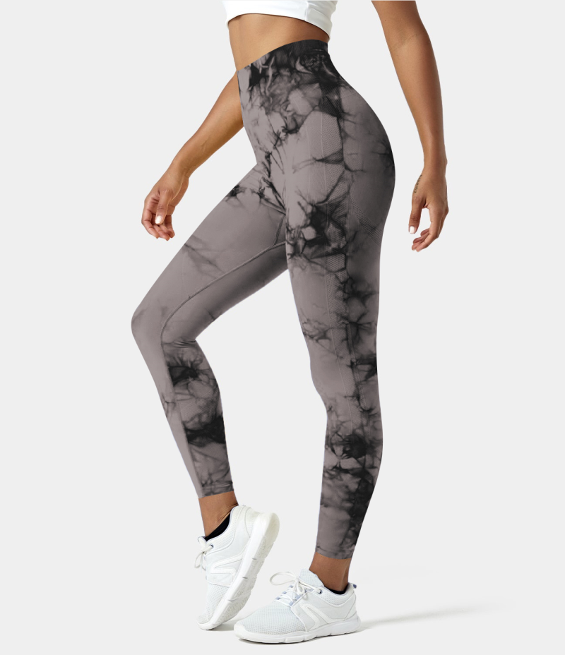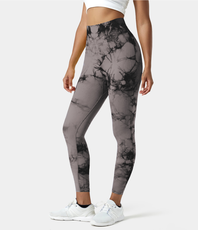:: Halara Seamless Flow Super High Waist Tie Dye Yoga Women's Leggings Tie-dye Fossil Gray | 135976-WYD