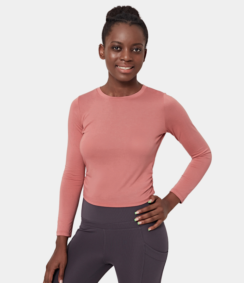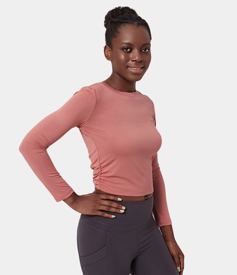 Halara Sheer Long Sleeve Back Twisted Sports-No Tank Women's Tops Candy Pink | NXOZUJD-62