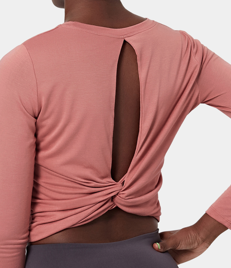 Halara Sheer Long Sleeve Back Twisted Sports-No Tank Women's Tops Candy Pink | VPYDNGR-52