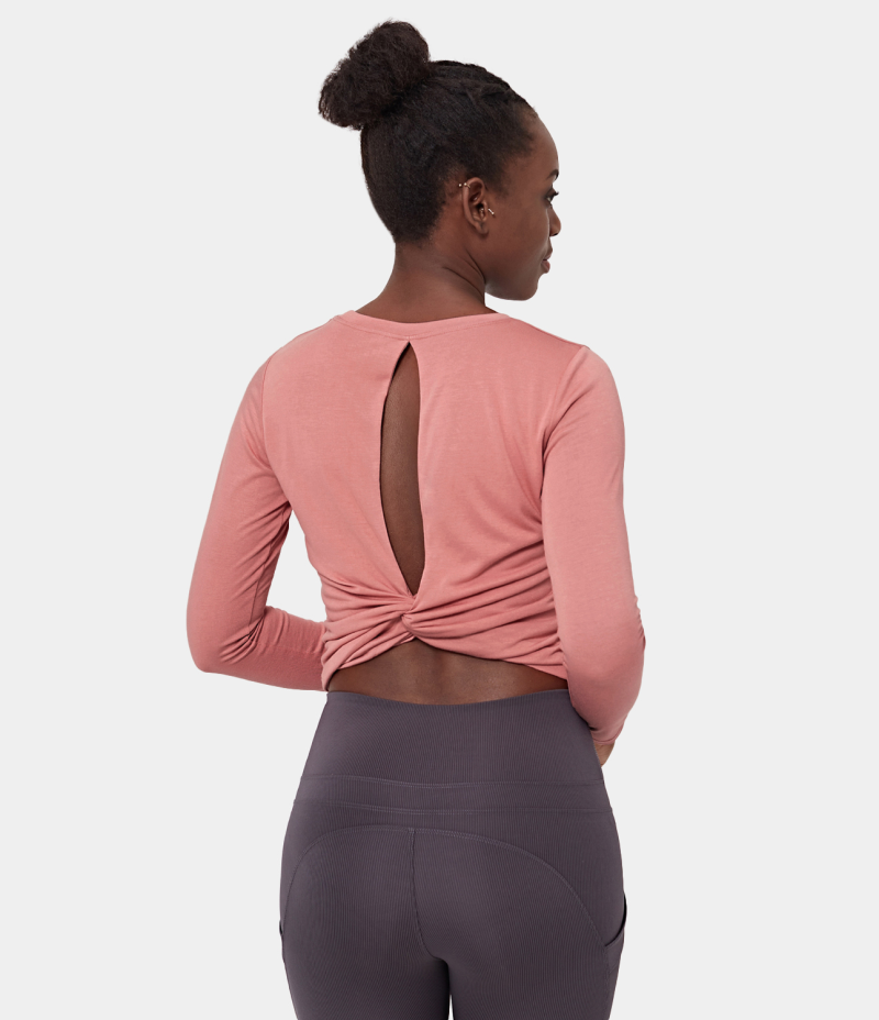 :: Halara Sheer Long Sleeve Back Twisted Sports-No Tank Women's Tops Candy Pink | VPYDNGR-52