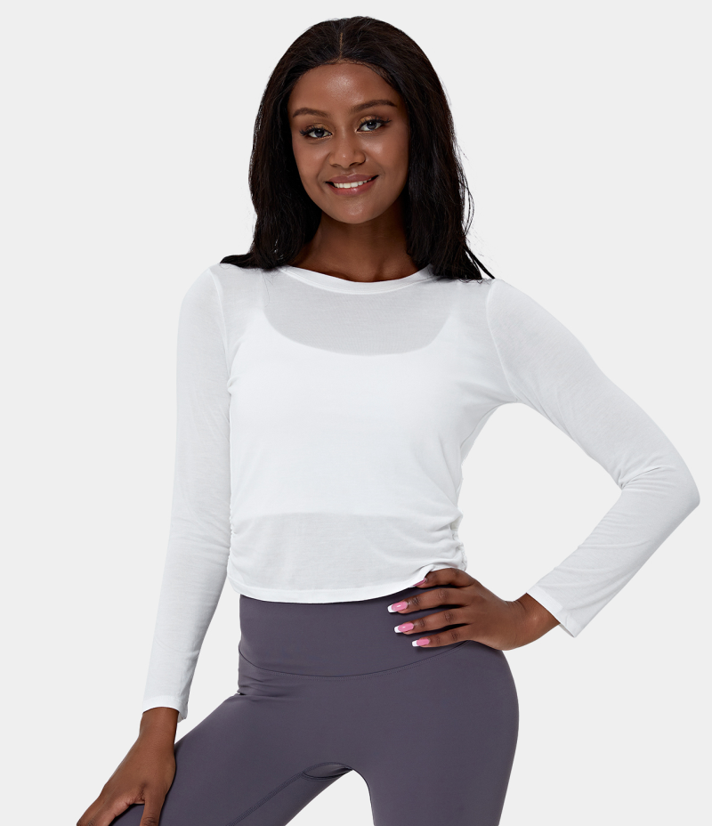 Halara Sheer Long Sleeve Back Twisted Sports-No Tank Women's Tops White | KHGSJXR-42