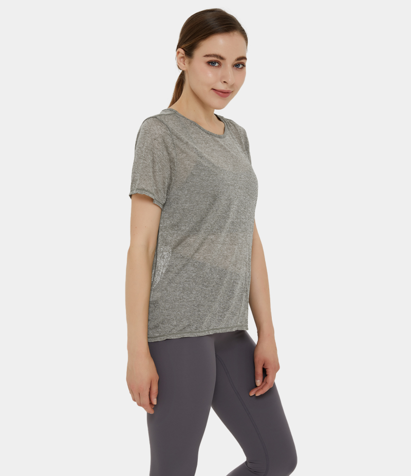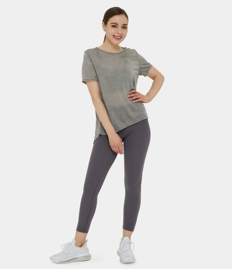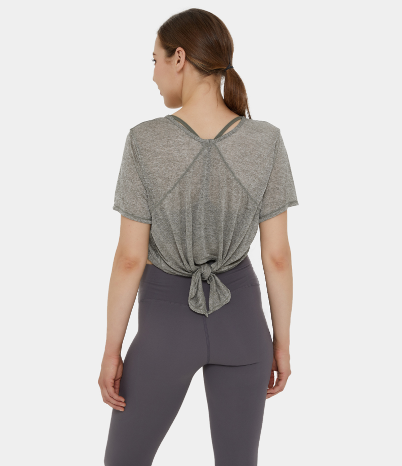 :: Halara Sheer Short Sleeve Split Tie Back Sports-No Tank Women's Tops Seagrass | XOTIQNM-39