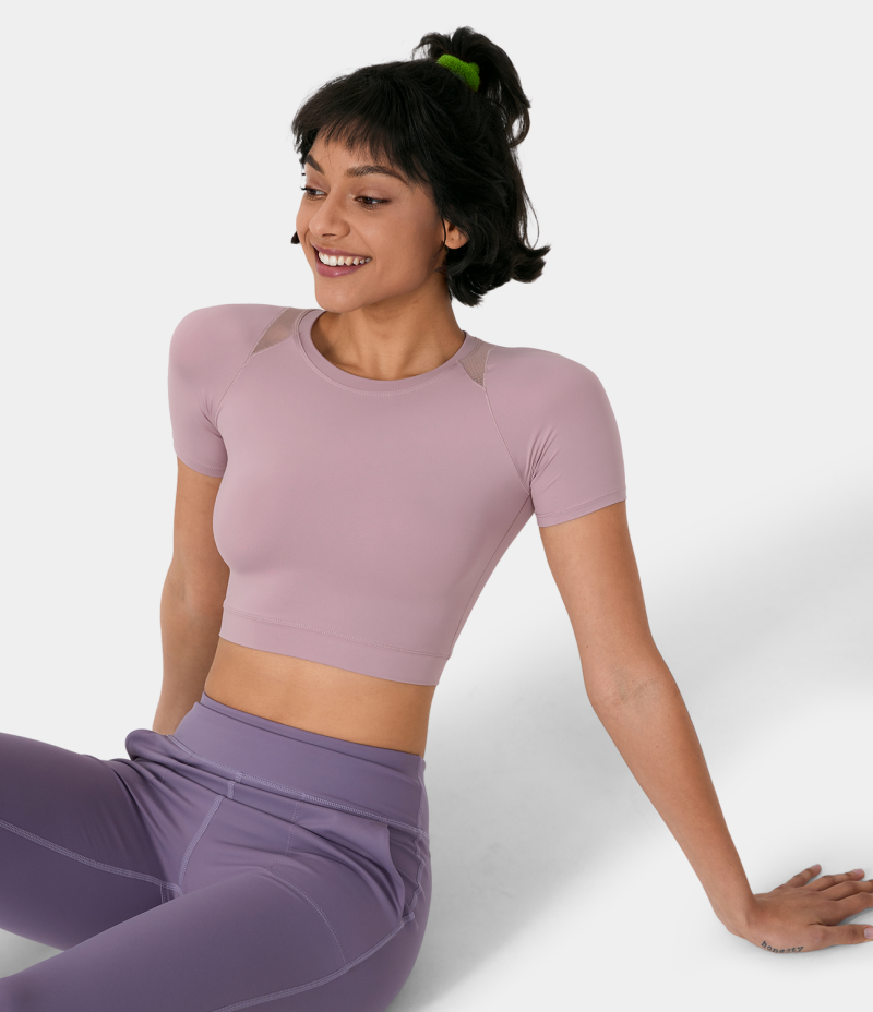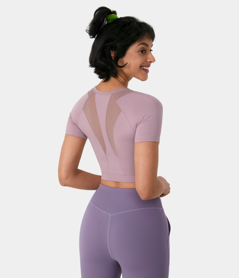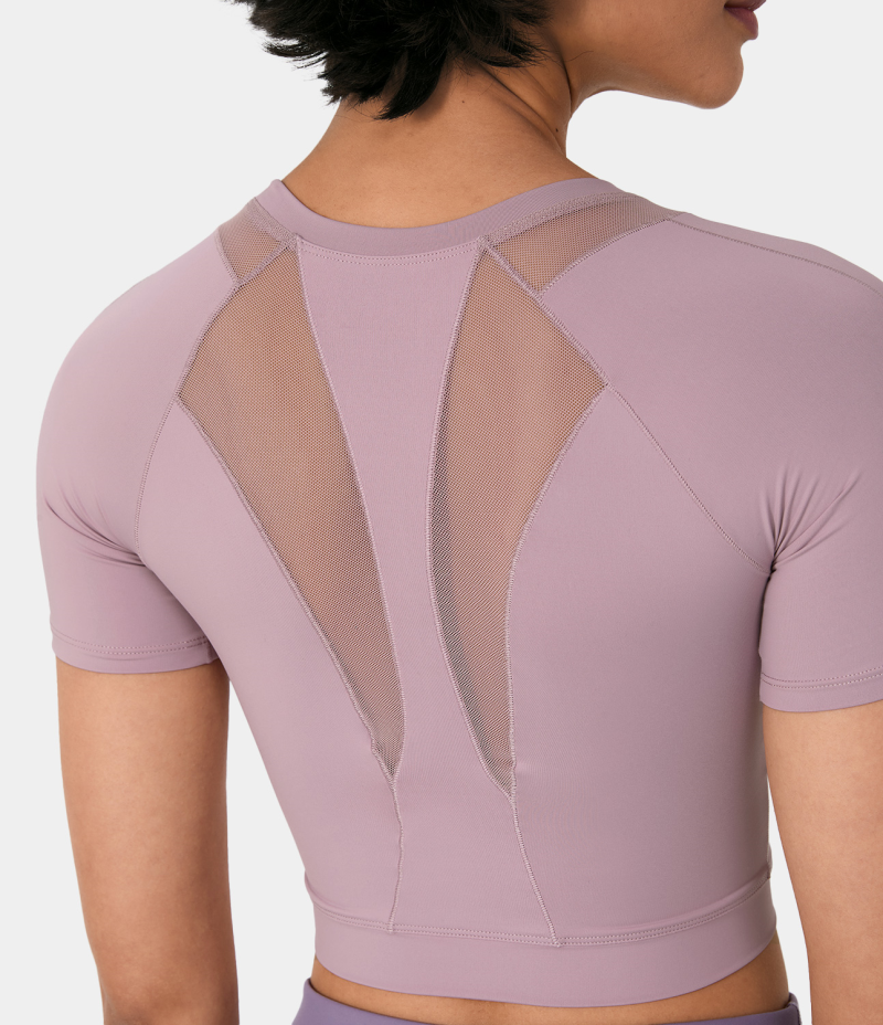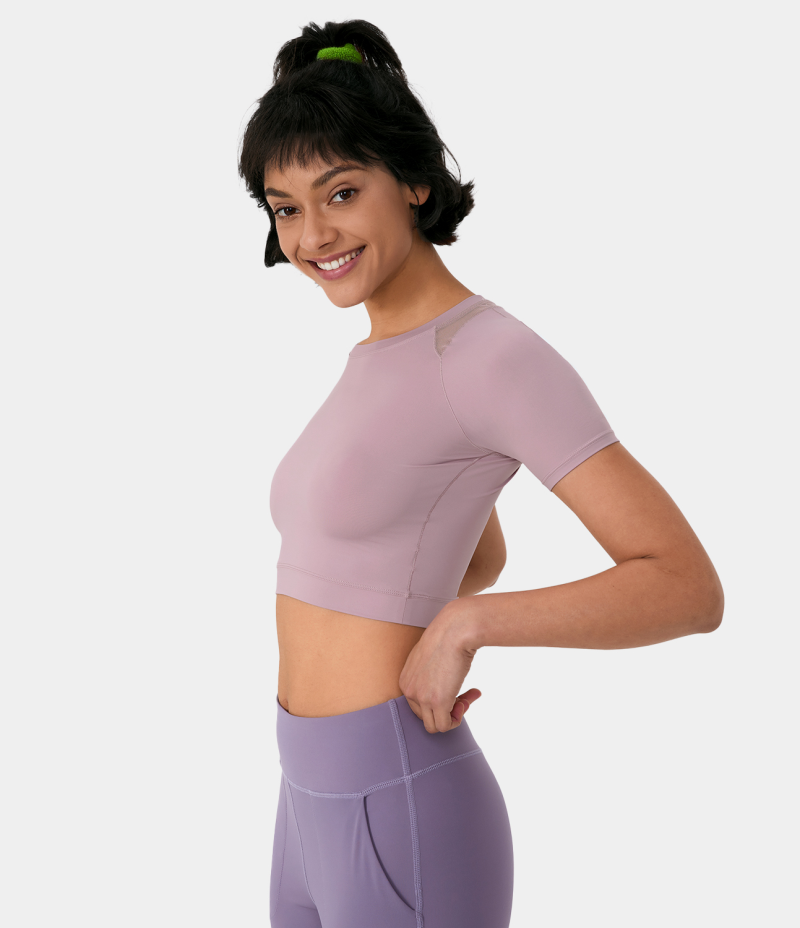 :: Halara Short Sleeve Contrast Mesh Cropped Sports Women's Tops Light Lilac | ZJHSRYA-49