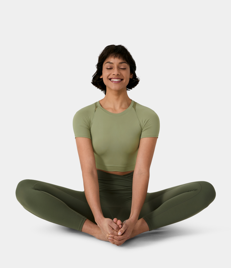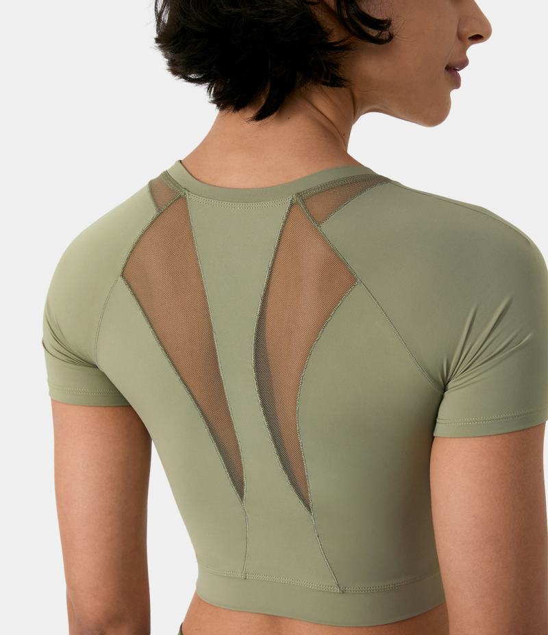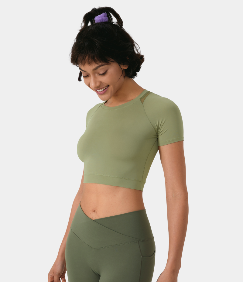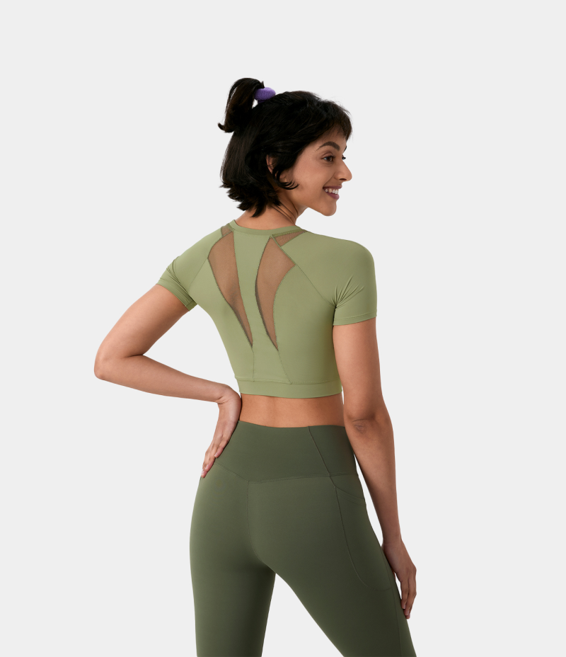 :: Halara Short Sleeve Contrast Mesh Cropped Sports Women's Tops Sage | LRXPFNT-62