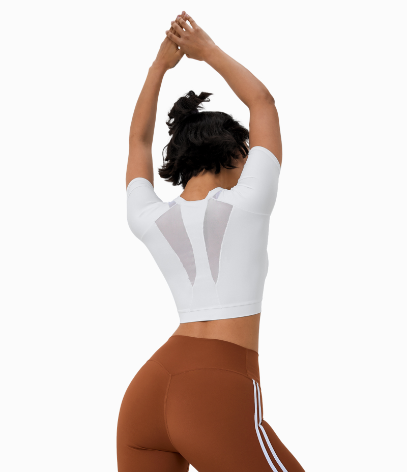 :: Halara Short Sleeve Contrast Mesh Cropped Sports Women's Tops White | ANCTVWG-05