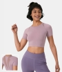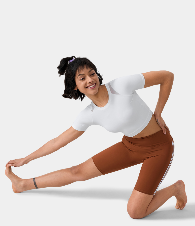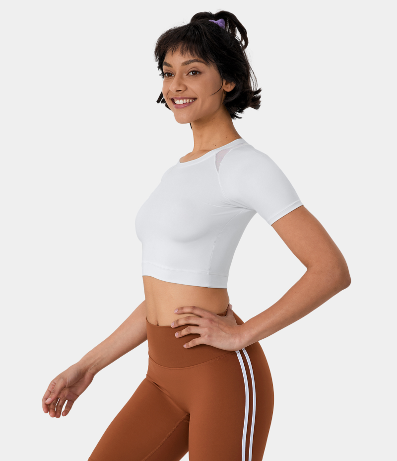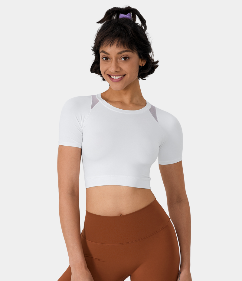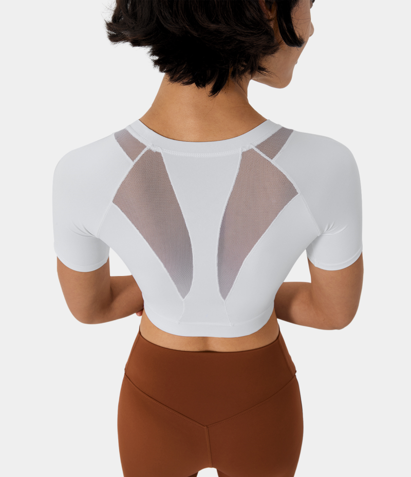 Halara Short Sleeve Contrast Mesh Cropped Sports Women's Tops White | ANCTVWG-05
