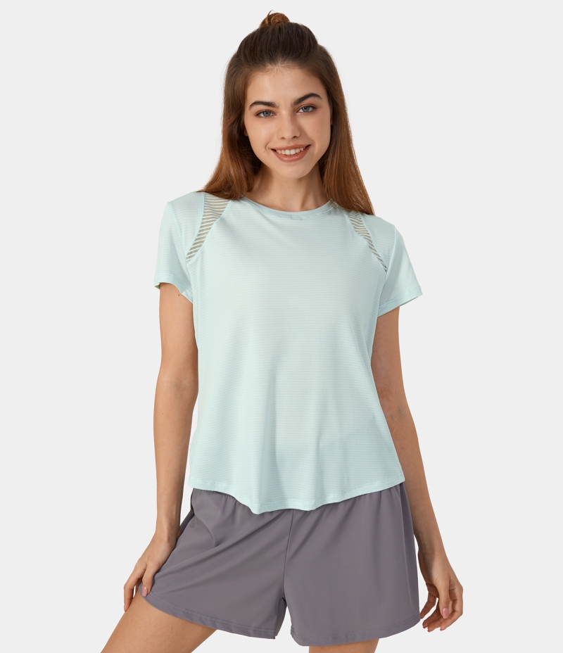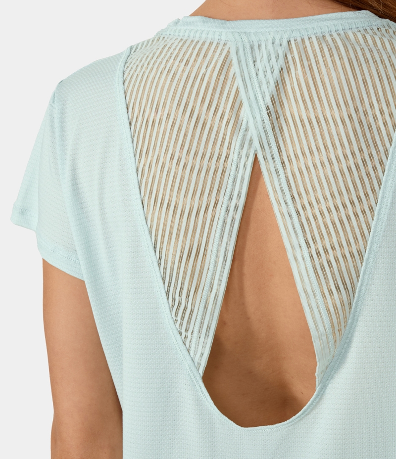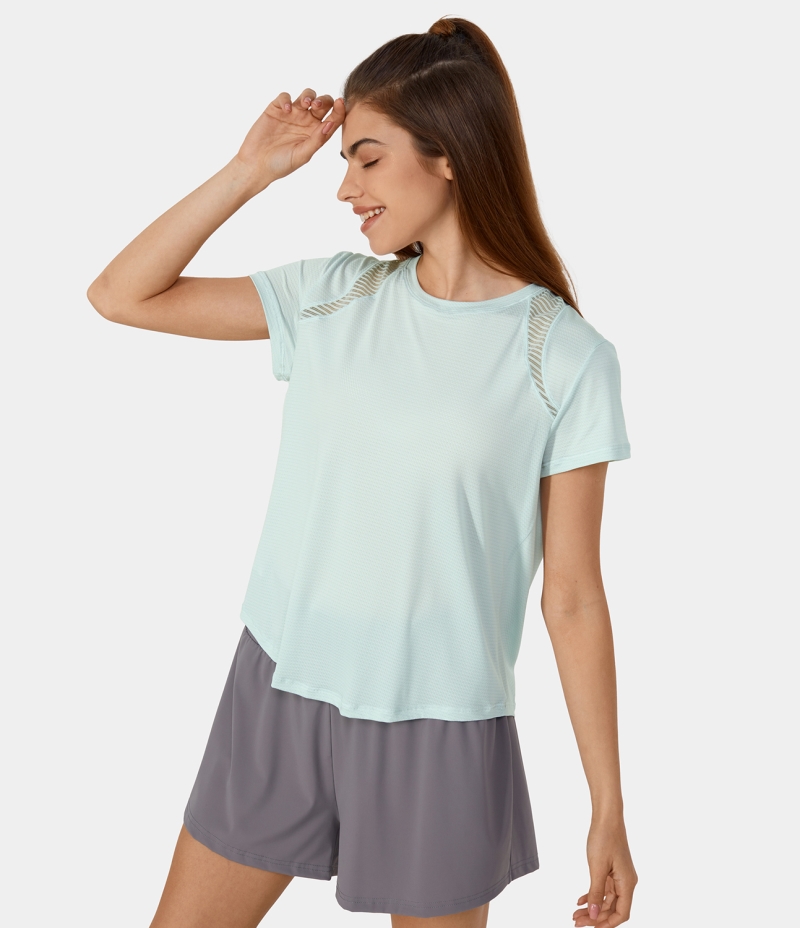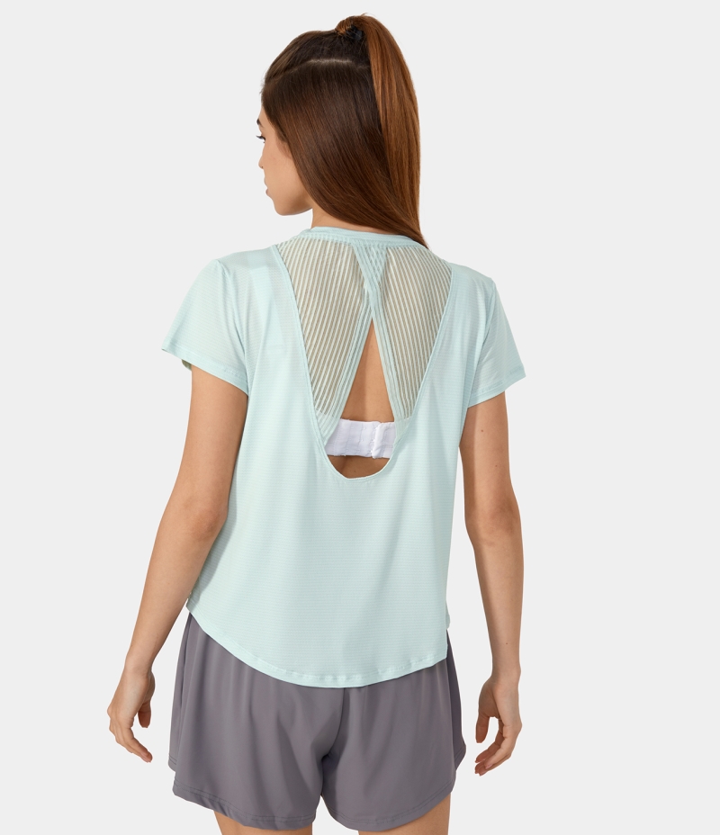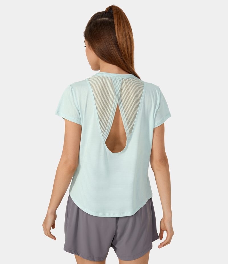 :: Halara Short Sleeve Contrast Mesh Cut Out Yoga Sports Women's Tops Billowing Sail | XVCIOLQ-32
