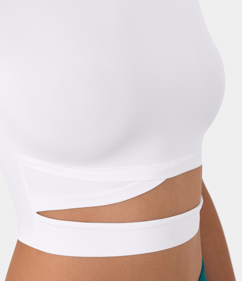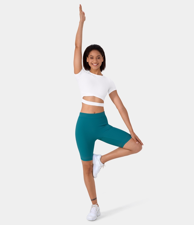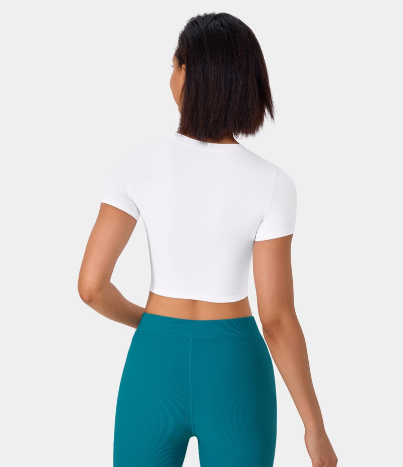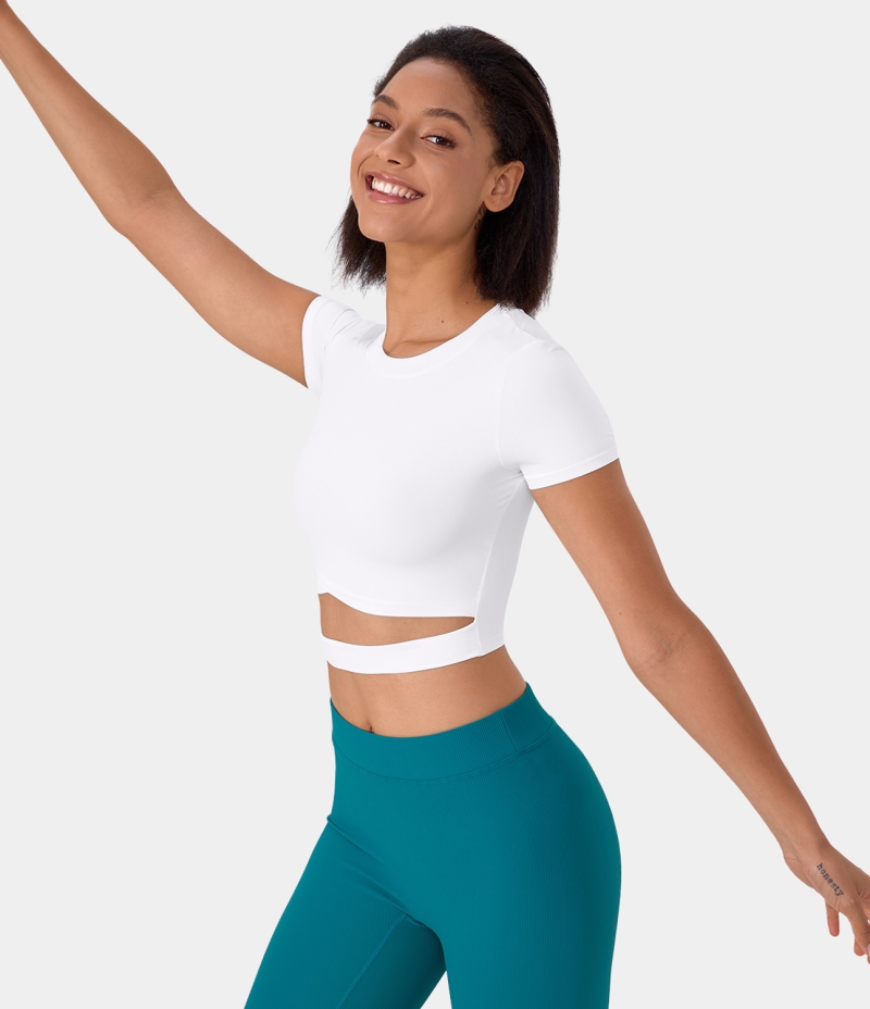 :: Halara Short Sleeve Cut Out Cropped Yoga Sports Women's Tops White | HXKFNSO-65