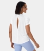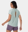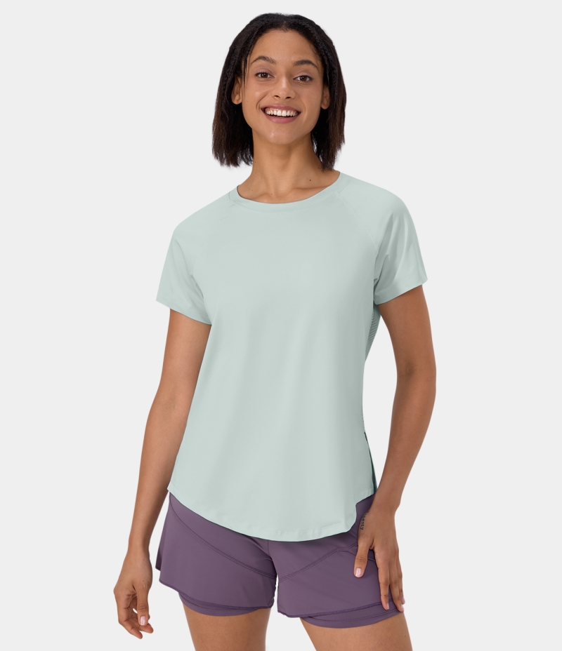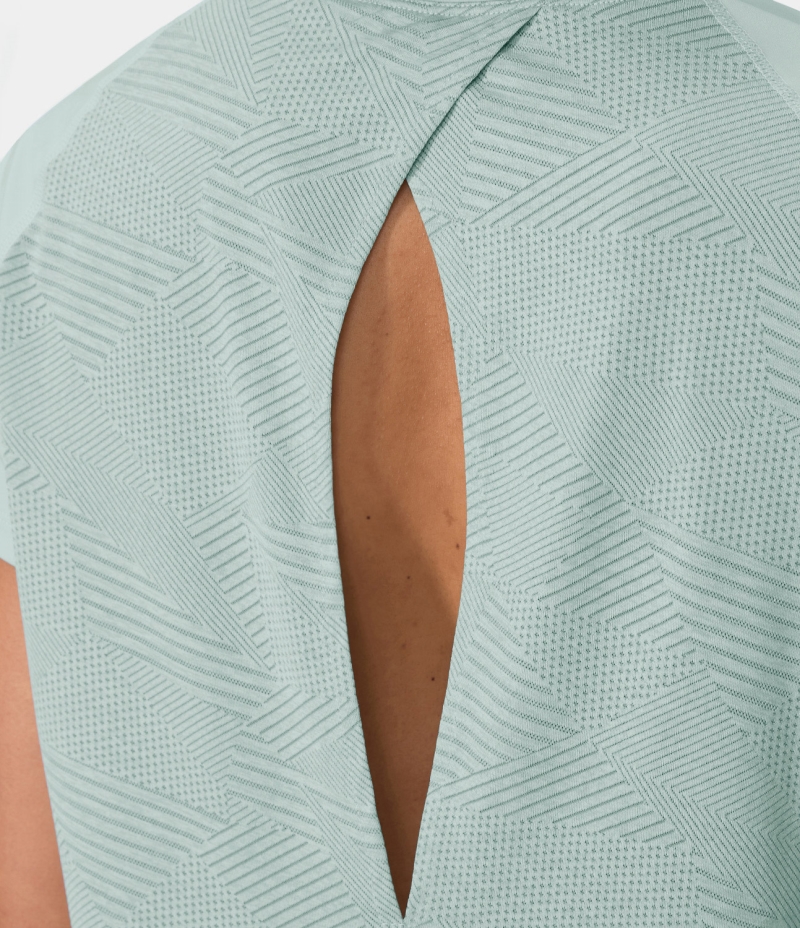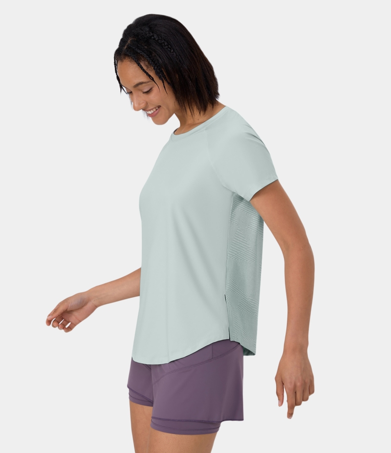 :: Halara Short Sleeve Split Hem Cut Out Jacquard Yoga Sports Women's Tops Ice Flow | ULXEYQV-81
