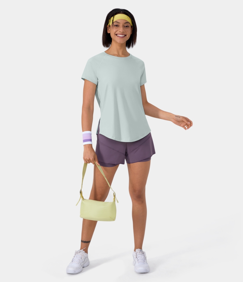 Halara Short Sleeve Split Hem Cut Out Jacquard Yoga Sports Women's Tops Ice Flow | ULXEYQV-81