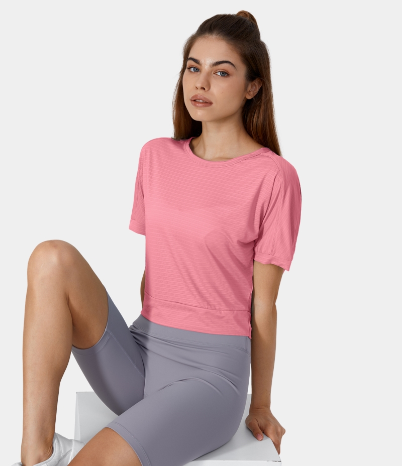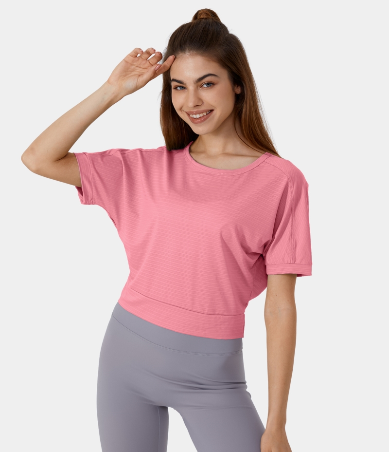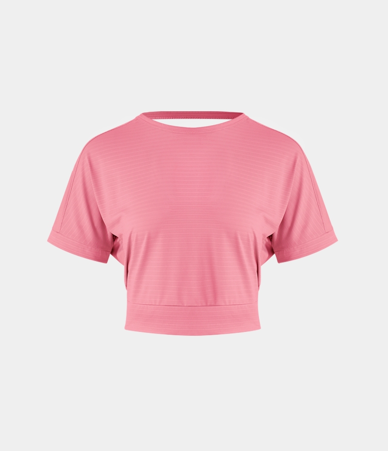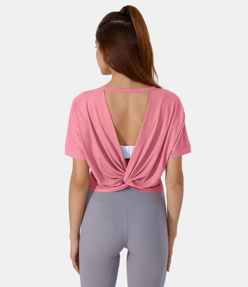 :: Halara Short Sleeve Twisted Cut Out Yoga Sports Women's Tops Dianthus | INZBUXK-80